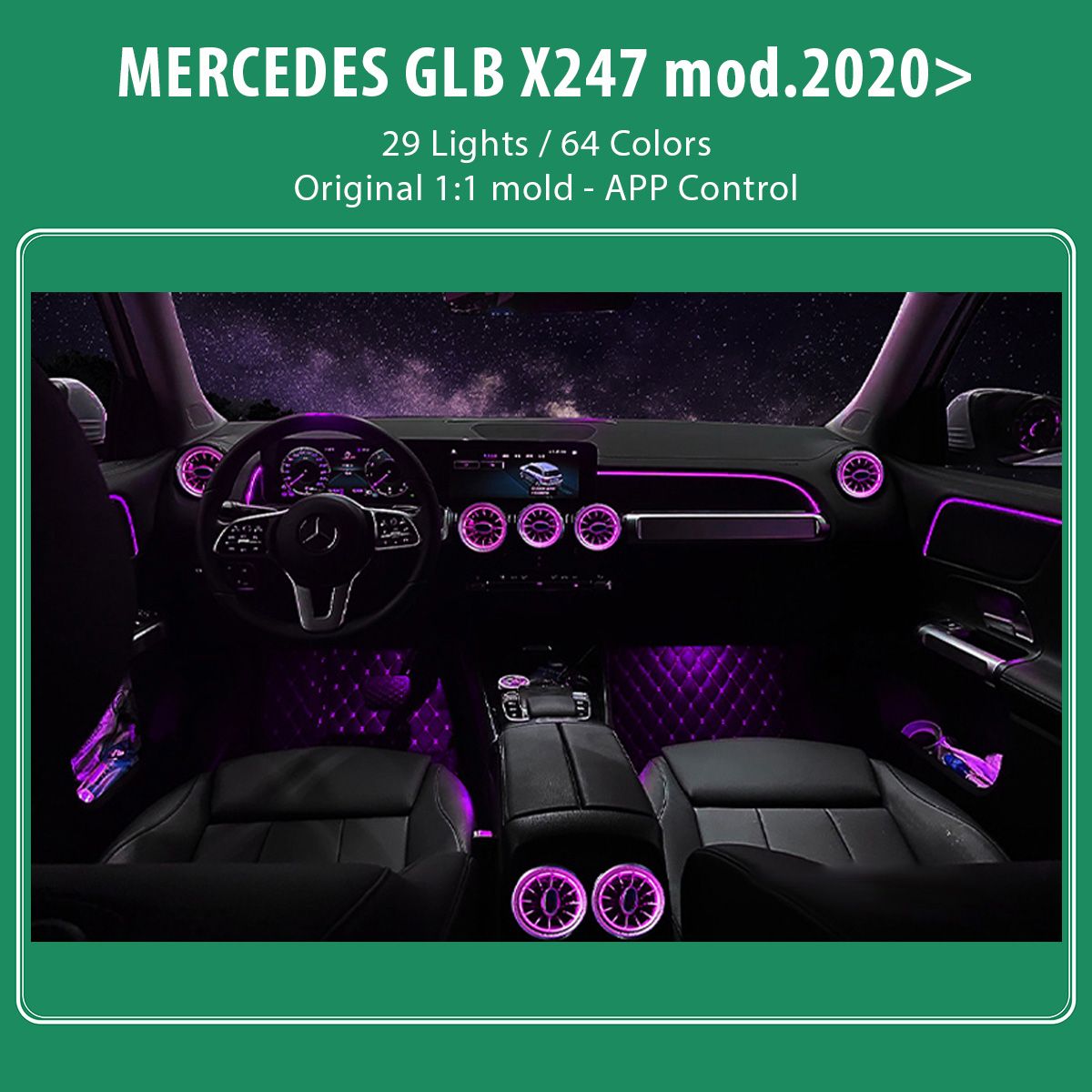 - 29 light sources (front/rear footwells 4 lamps, saddle 4 lamps, center cup holder 1 lamp, center armrest box 1 lamp, gauges 2 lamps, four door pulls 4 lamps, four door storage pockets 4 lamps, front left/right door profile 2 lamps, turbo vents 5 lamps, rear vents 2 lamps).