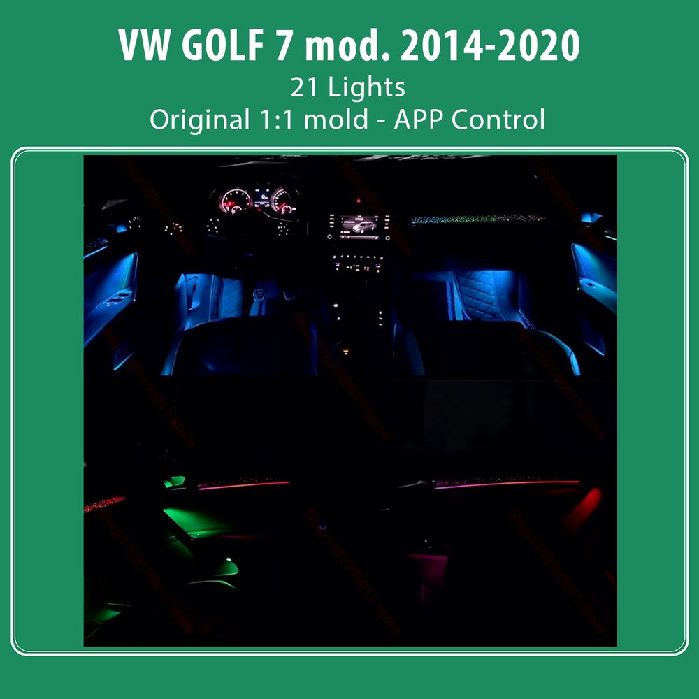 - 21 lights (4 door handle lights, 4 door outline lights, 4 door storage box lights, 4 footwell lights, 4 center armrest, 1 central co-driver)