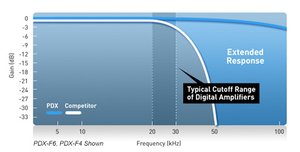 ενισχυτές κλάσης-D δεν είναι γνωστοί για την παραγωγή σε υψηλές συχνότητες. Αυτοί οι νέοι ενισχυτές είναι οι πρώτοι ενισχυτές κλάσης-D που σπάνε την παράδοση των ενισχυτών του παρελθόντος. Οι ενισχυτές PDX-M12, PDX-M6, PDX-F6 και PDX-F4 είναι συνώνυμοι με την παραγωγή υψηλής συχνότητας.Η ένδειξη THD πραγματικά πέφτει στις υψηλές συχνότητες με αποτέλεσμα καθαρό ήχο καθότι το αυτί σας είναι ευαίσθητο σε παραμορφώσεις -<0.005% THD+N @ 1W, <0.05% THD+N @ rated power.