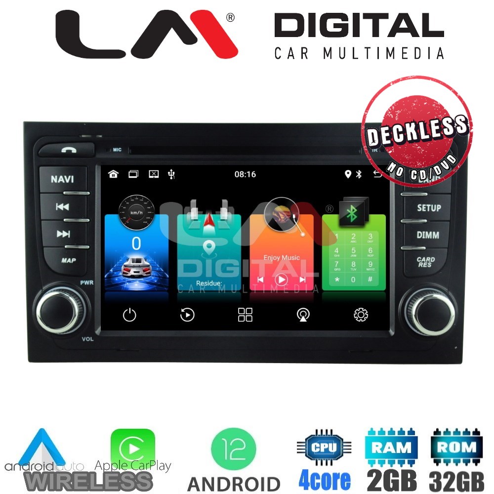 ΟΕΜ οθόνη 9'' με λογισμικό Android 12, 4 πύρηνο επεξεργαστή, 2Gb Ram μνήμη, με ενσωματωμένο σύστημα πλοήγησης και ασύρματο Apple Car Play/ενσύρματο Android Auto.