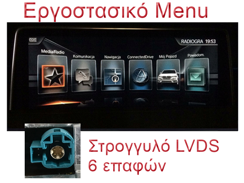 | Συμβατά μοντέλα | BMW X1 F49 mod.2018> BMW X2 F39 mod.2018> προσοχή αυστηρώς για οχήματα με Original EVO System 6PIN LVDS & AUΧ IN |