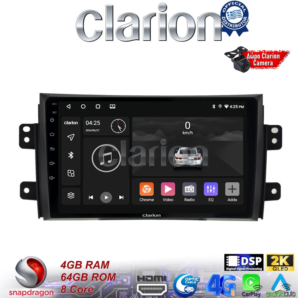 CLARION GL74446 Multimedia οθόνη συμβατή για Fiat Sedici 2005 > 2013 Suzuki SX4 2005 > 2013 με 8 πύρηνο επεξεργαστή SnapDragon με 4GB/64GB και 2Κ οθόνη