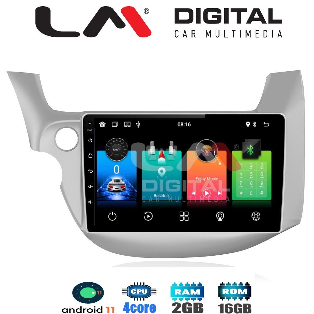 Android 11, Οθόνη OEM 10.1'', για Honda Jazz από το 2008 έως το 2012, Capacitive HD Touchscreen, Resolution 1024 Χ 600 Pixels, 4 X 40 Watt, με 4πύρηνο επεξεργαστή και 2Gb Ram.