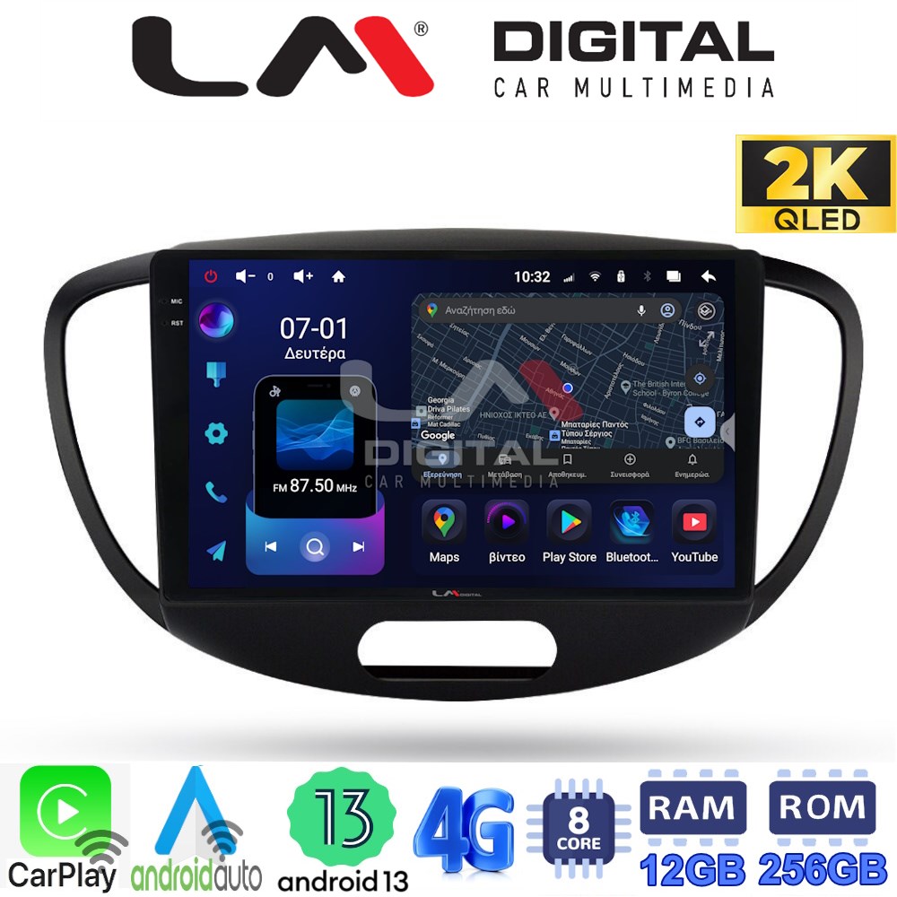 LM ZS8455 GPS Οθόνη OEM Multimedia Αυτοκινήτου για HYUNDAI i10 2008>2013 (CarPlay/AndroidAuto/BT/GPS/WIFI/GPRS)