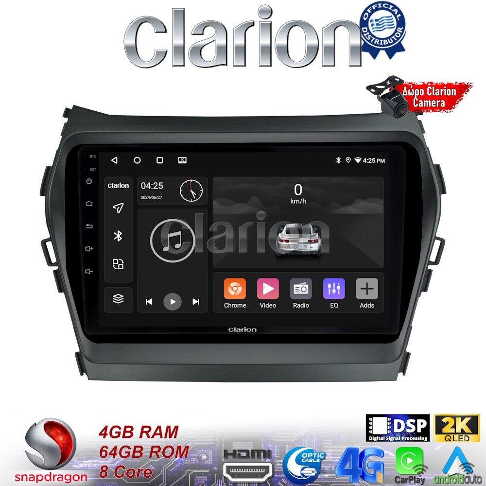 CLARION GL74309 Οθόνη OEM Multimedia Αυτοκινήτου για HY SANTA FE 2013 > 2017HY IX45 (CarPlay/AndroidAuto/BT/GPS/WIFI/GPRS)