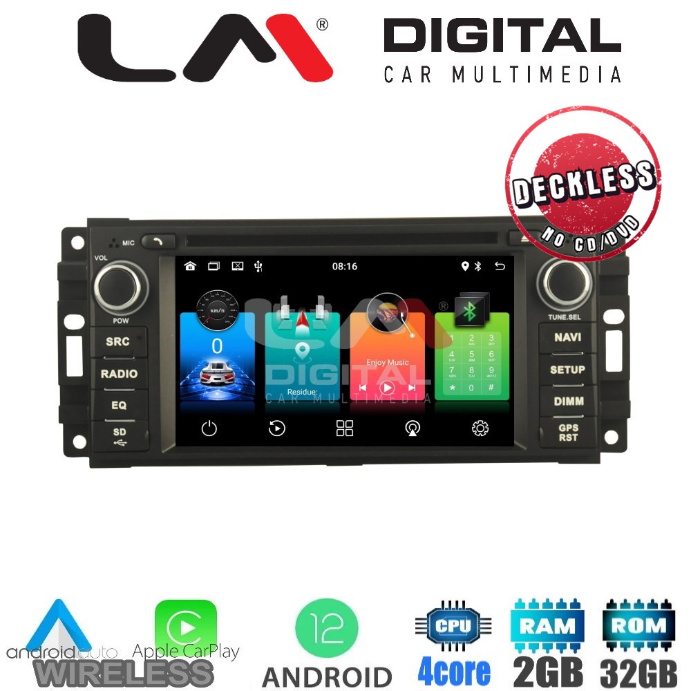 ΟΕΜ οθόνη 7'' με λογισμικό Android 12, 4 πύρηνο επεξεργαστή, 2Gb Ram μνήμη, με ενσωματωμένο σύστημα πλοήγησης και ασύρματο Apple Car Play/ενσύρματο Android Auto.