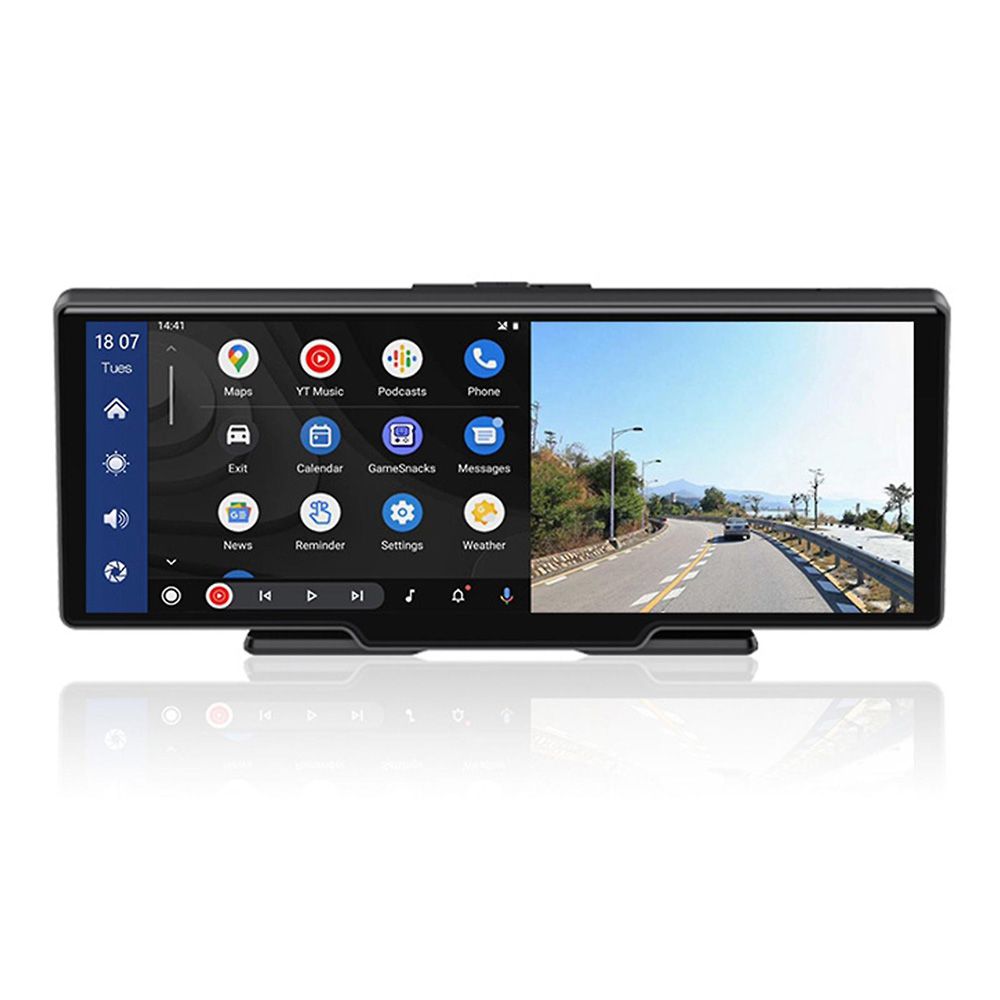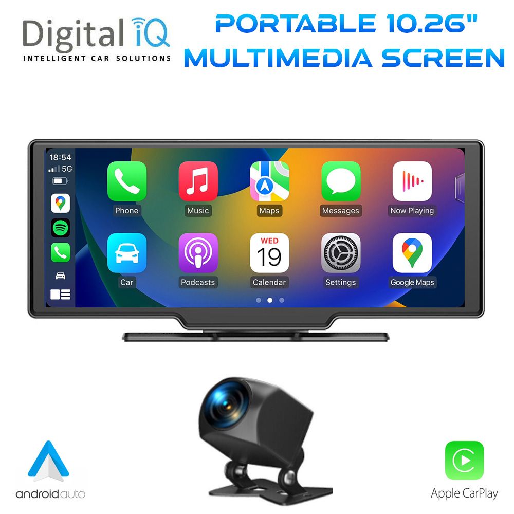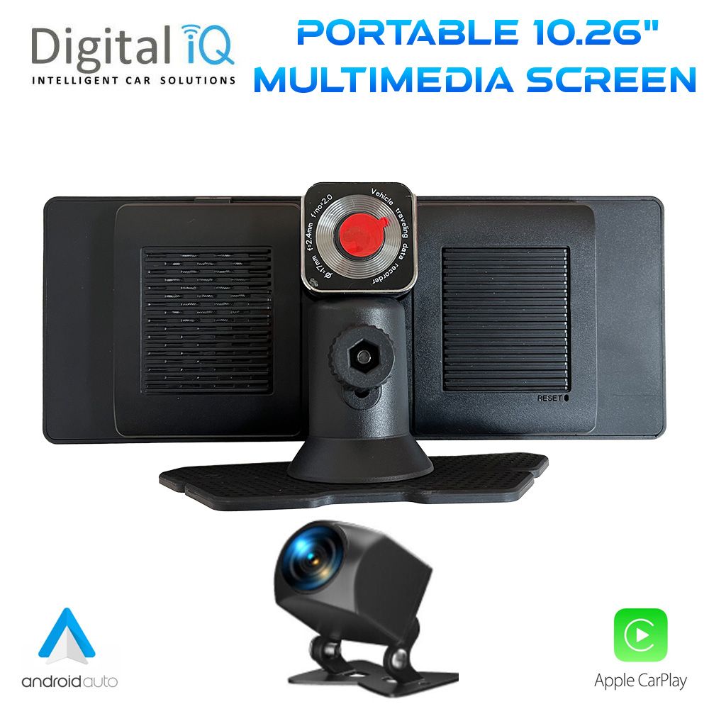 Portable Multimedia 10.26" Screen with Wireless Apple CarPlay & Android Auto, Dual Cam DVR with front & rear camera.