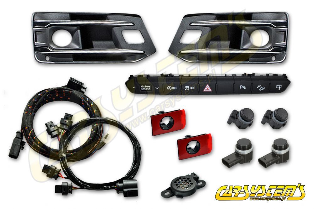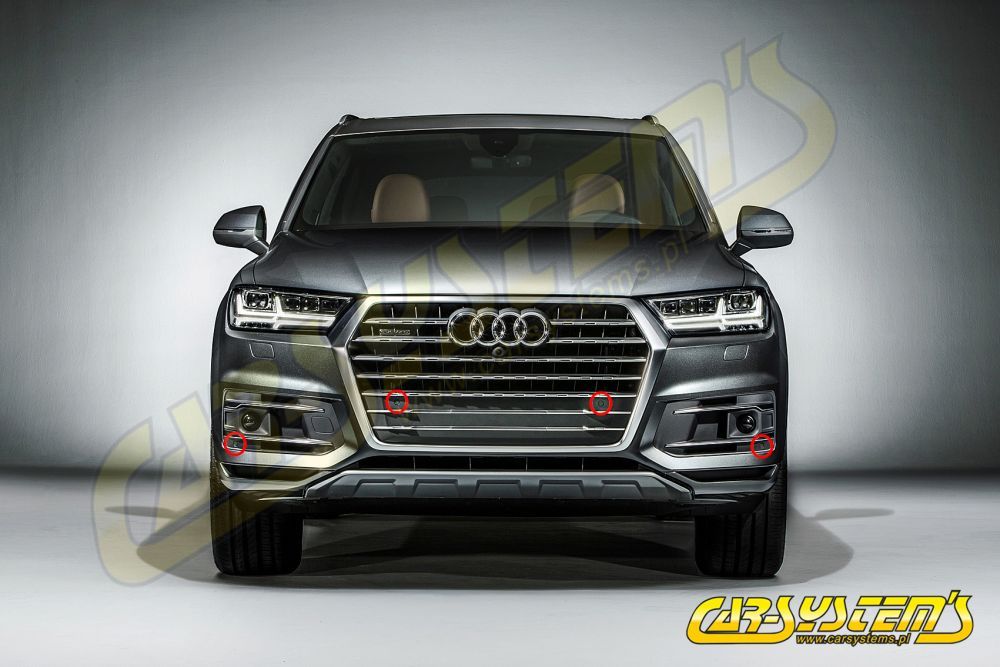 APS+ Audi Parking System - Front UPGRADE KIT w. OPS for Audi Q7 MY 2017 - Switch panel: 4M0925301K - lower grille 4M0807681AA / 4M0807682AA