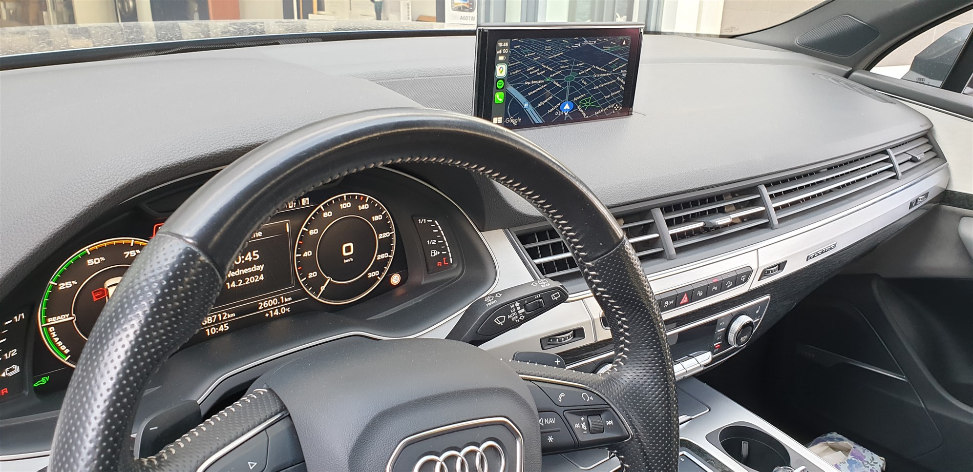 Αναβάθμιση της εργοστασιακής οθόνης σε Audi Q7 4M με Apple Car Play, Android Auto και Media Player. Ο χειρισμός των εφαρμογών είναι μέσω του εργοστασιακού MMi. H εγκατάσταση είναι plug and play και απαιτείται εργασία μιας ώρας. Διαθέσιμο για αυτοκίνητα BMW-Mercedes-Porsche-Mini-Audi-Toyota-Peugeot-Citroen.