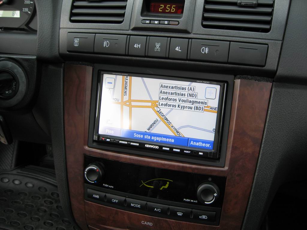 Επιλέξαμε για εγκατάσταση την 7” Touch Screen οθόνη της Kenwood DNX7200. Πέρα από την ύπαρξη πλοήγησης, κομβικό σημείο επιλογής ήταν οι δυνατότητες του μηχανήματος για αναπαραγωγή αρχείων MP3 γραμμένα σε μορφή Cd (700ΜΒ) η σε μορφή DVD (4.7GB), ταινιών Dvd, Θύρας USB, Cd Audio, WMA (Windows Media File) και AAC (Advanced Audio Codec). Η θύρα USB του μηχανήματος μπορεί να διαχειριστεί USB Stick μέχρι και 4 GΒ. Στην ίδια θύρα USB με την προσθήκη του καλωδίου KCA-iP300V μπορούμε να επιτύχουμε την ιδανική διαχείριση του i-pod Audio η Video μέσω της οθόνης αφής (Touch Screen). Επίσης μπορεί να διαχειριστεί σκληρό δίσκο 60 Gigabyte αλλά θα πρέπει να διαθέτει τροφοδοσία μεσω του καλωδίου USB (Max κατανάλωση 500 mA). Αναγνωρίζονται απεριόριστα Directories (Folder) άλλα πάντα μέχρι 256 Files (Tracks) στο εκάστοτε Folder.