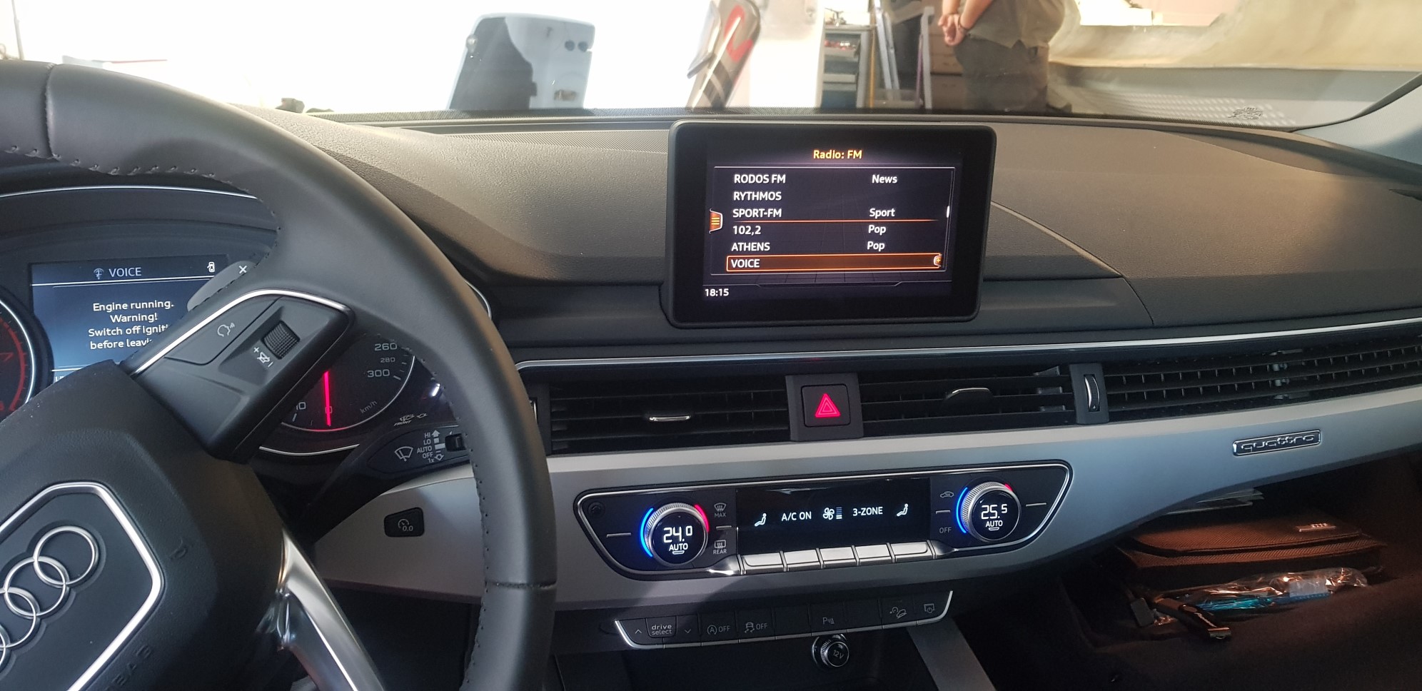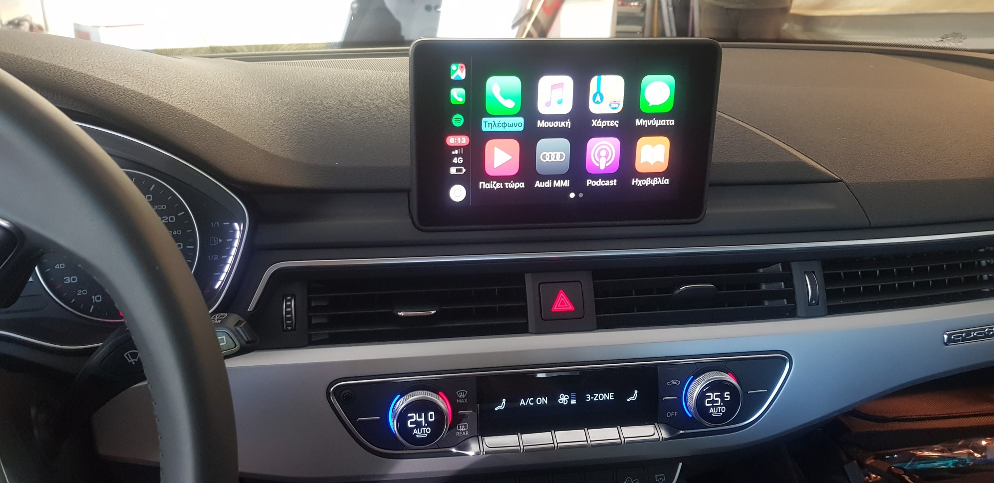Audi A4 B9/8W (2015 – ). Apple Car Play Wireless, Android Auto. Ο Χειρισμός πραγματοποιείται μέσω των εργοστασιακών πλήκτρων του αυτοκινήτου.(MMi). Η σύνδεση είναι Plug & Play και ο χρόνος εγκατάστασης δεν ξεπερνά την 1 ωρα.