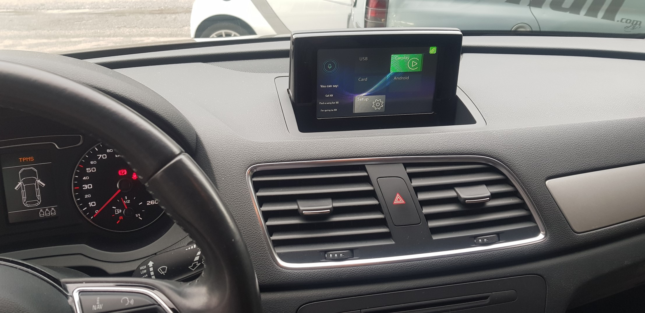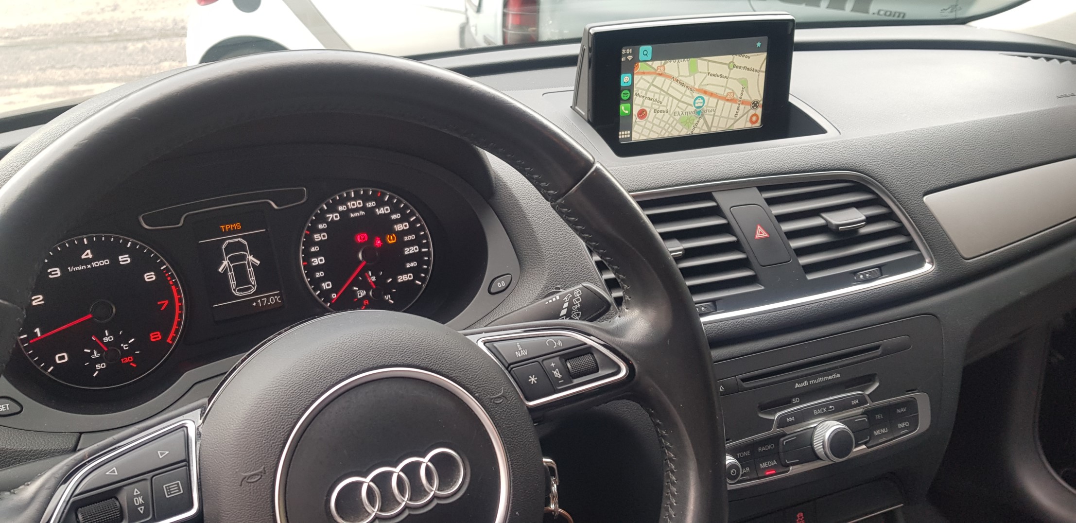 Αναβάθμιση της εργοστασιακής οθόνης σε Audi Q3 8U, με Wireless Apple Car Play, Android Auto, Rear Camera. Ο χειρισμός πραγματοποιείται από τα εργοστασιακά πλήκτρα και μέσω αφής από την εργοστασιακή οθόνη. Ο χρόνος εγκατάστασης δεν ξεπερνά την 1 ωρα και ολες οι συνδέσεις είναι Plug And Play.