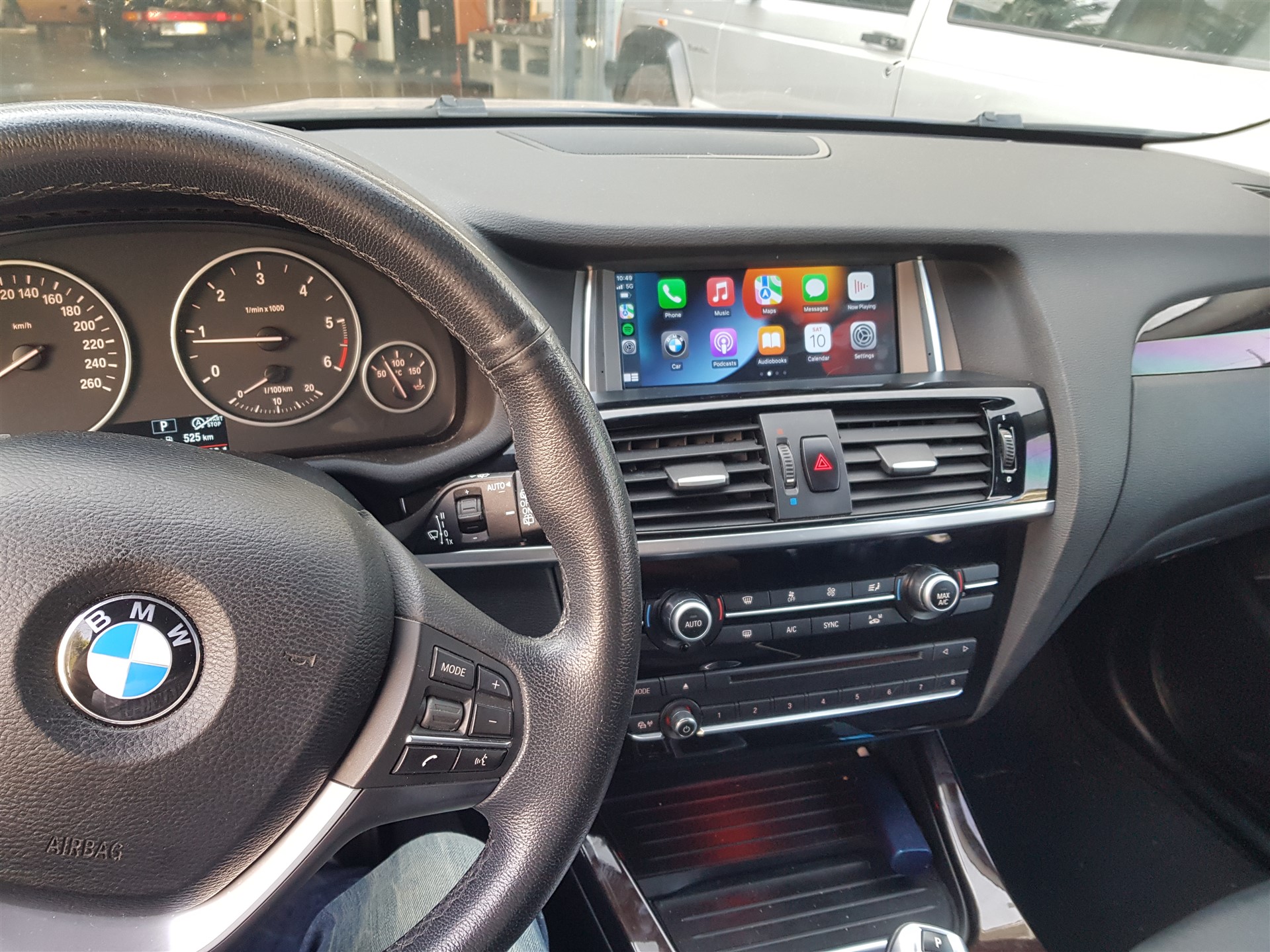 Αναβάθμιση της εργοστασιακής οθόνης σε BMW X3 F25. Android 12, 10.25". Wireless Apple Car Play, Android Auto κάμερα οπισθοπορείας και Media Player. Ο χειρισμός των εφαρμογών ειναι μέσω του I-Drive αλλα και με Touch Screen απο την οθόνη. Ο ηχος αναπαράγεται μέσω του Aux-In της εργοστασιακής πηγής. Ο χρόνος που απαιτείται για την εγκατάσταση ειναι 2 ωρες.