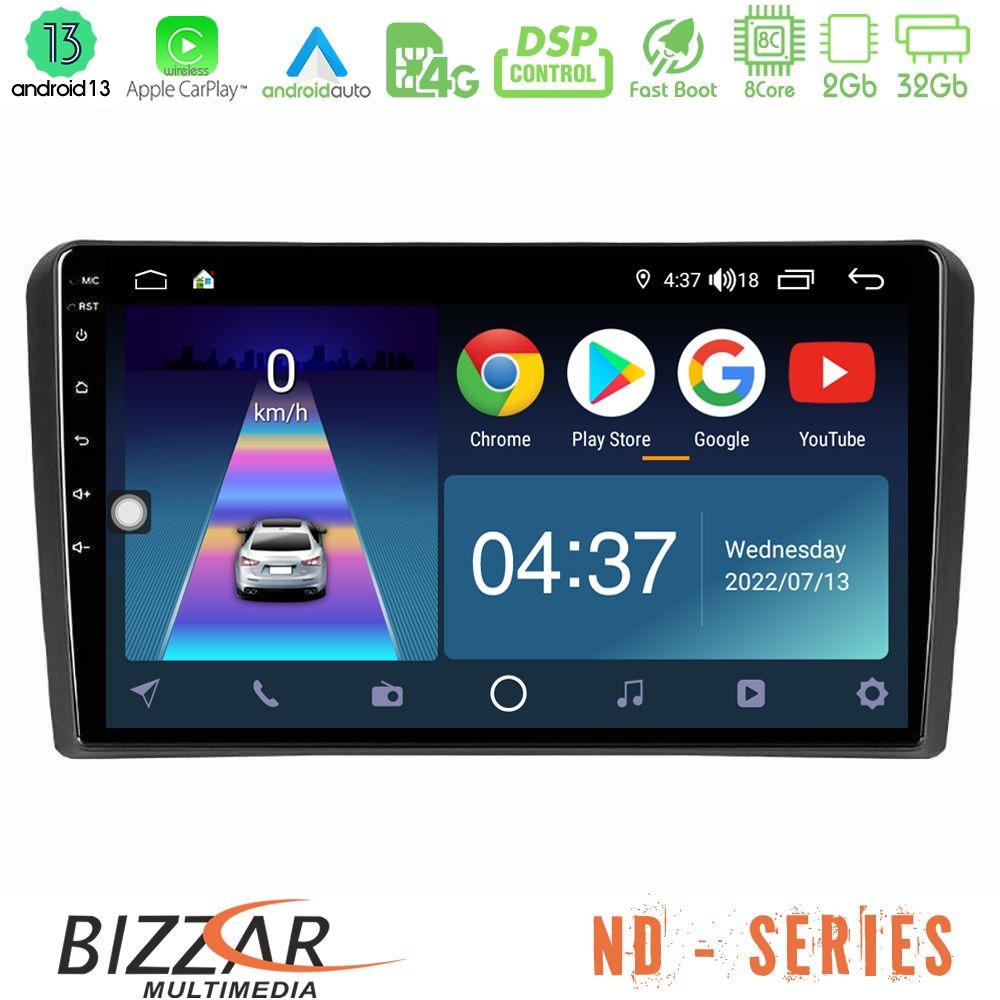 Bizzar ND Series 8Core Android13 2+32GB Audi A3 8P Navigation Multimedia Tablet 9"