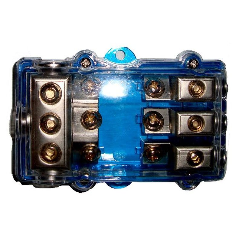 Τριπλή Ασφαλειοθήκη / Κατανεμητής ρεύματος Είσοδος 4Ga x 3 Έξοδος  8 Ga x 3 Κατάλληλες ασφάλειες τύπου mini ANL Fuse 40 - 100 Amp