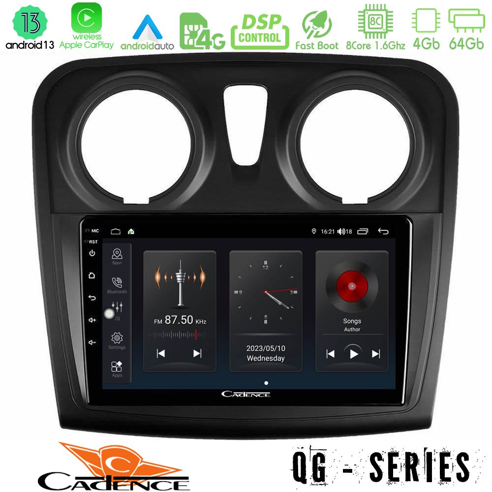 Cadence QG Series 8Core Android13 4+64GB Dacia Sandero/Dokker 2014-2020 Navigation Multimedia Tablet 9"