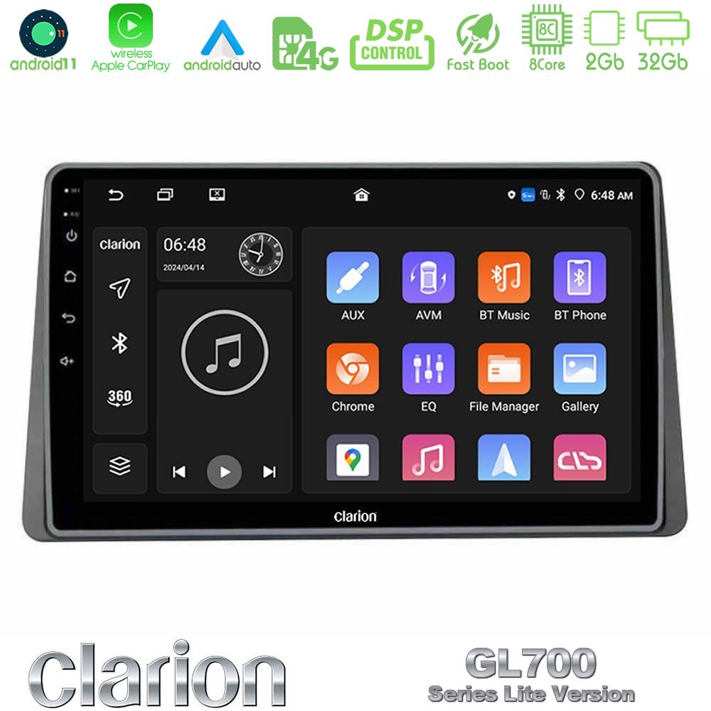 Clarion GL700 Lite Series 8Core Android11 2+32GB Dacia Duster 2019-> Navigation Multimedia Tablet 9" Με Carplay & Android Auto