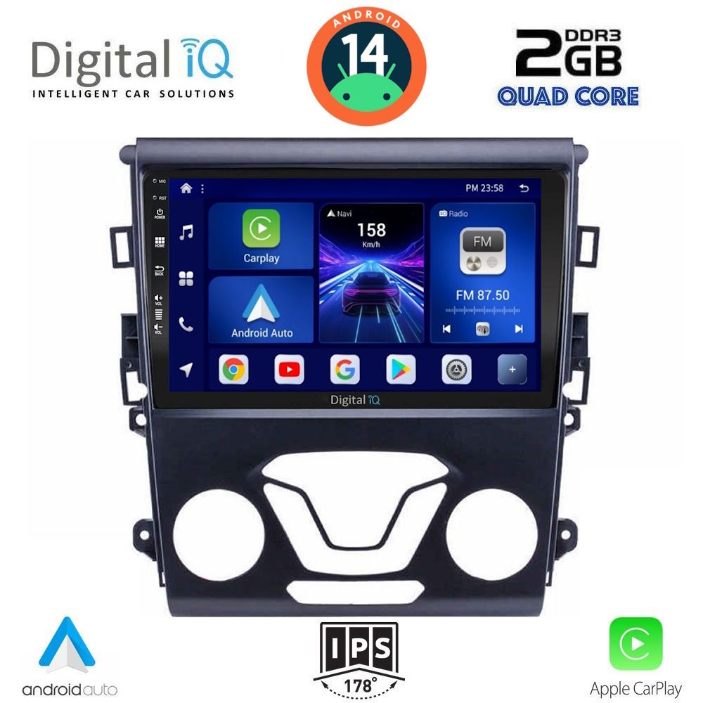 [vc_row equal_height="yes" margin_bottom="40px"][vc_column width="1/5"][vc_single_image source="external_link" external_img_size="170x170" alignment="center" css_animation="slideInDown" custom_src="https://digitaliq.gr/wp-content/uploads/2018/10/icon_cpu_170x170.png"][vc_custom_heading text="MTK 8227L Quad Core 1.3Ghz | 2GB DDR3 RAM | 32GB NAND FLASH STORAGE" font_container="tag:h6|text_align:center" spacing_heading="" spacing_heading_tab="" spacing_heading_mobile="" custom_heading_font_weight="600"][/vc_column][vc_column width="1/5"][vc_single_image source="external_link" external_img_size="170x170" alignment="center" css_animation="slideInDown" custom_src="https://digitaliq.gr/wp-content/uploads/2021/11/icon_android-170x170.png"][vc_custom_heading text="ANDROID 14 FAST LOADING 8sec" font_container="tag:h6|text_align:center" custom_heading_font_weight="600"][/vc_column][vc_column width="1/5"][vc_single_image source="external_link" external_img_size="170x170" alignment="center" css_animation="slideInDown" css="" custom_src="https://digitaliq.gr/wp-content/uploads/2024/10/icon_carplay_android-auto_certified_170.png"][vc_custom_heading text="LICENSED WIRELESS APPLE CARPLAY & ANDROID AUTO" font_container="tag:h6|text_align:center" custom_heading_font_weight="600"][/vc_column][vc_column width="1/5"][vc_single_image source="external_link" external_img_size="170x170" alignment="center" css_animation="slideInDown" custom_src="https://digitaliq.gr/wp-content/uploads/2018/10/eq_icon.png"][vc_custom_heading text="64 BAND EQUALIZER" font_container="tag:h6|text_align:center" custom_heading_font_weight="600"][/vc_column][vc_column width="1/5"][vc_single_image source="external_link" external_img_size="170x170" alignment="center" css_animation="slideInDown" custom_src="https://digitaliq.gr/wp-content/uploads/2018/10/rear_cam_icon.png"][vc_custom_heading text="FRONT & REAR CAMERA SUPPORT" font_container="tag:h6|text_align:center" custom_heading_font_weight="600"][/vc_column][/vc_row][vc_row][vc_column][vc_separator][/vc_column][/vc_row][vc_row][vc_column width="1/2" margin_right="40px" padding_right="40px"][vc_row_inner][vc_column_inner width="1/4" padding_top="20px"][vc_single_image source="external_link" external_img_size="100x61" alignment="center" css_animation="zoomIn" custom_src="https://digitaliq.gr/wp-content/uploads/2018/10/9inch-capacitive-touchscreen.jpg"][/vc_column_inner][vc_column_inner width="3/4"][vc_custom_heading text="9 inches" font_container="tag:h5|text_align:left" custom_heading_font_weight="600"][vc_custom_heading text="Capacitive Touchscreen" font_container="tag:h6|text_align:left" custom_heading_font_weight="500"][vc_column_text]Eυκρινής οθόνη αφής, υψηλής ανάλυσης 1024x600pixels.[/vc_column_text][/vc_column_inner][/vc_row_inner][/vc_column][vc_column width="1/2"][vc_row_inner][vc_column_inner width="1/4" padding_top="20px"][vc_single_image source="external_link" external_img_size="100x61" alignment="center" css_animation="zoomIn" custom_src="https://digitaliq.gr/wp-content/uploads/2021/11/13-band_graphical_eq.jpg"][/vc_column_inner][vc_column_inner width="3/4"][vc_custom_heading text="4x50 WATT" font_container="tag:h5|text_align:left" custom_heading_font_weight="600"][vc_custom_heading text="EQUALIZER with 64 BANDS" font_container="tag:h6|text_align:left" custom_heading_font_weight="500"][vc_column_text]Δυνατός και πλούσιος ήχος με δυνατότητα ρυθμίσεων μέσω του equalizer 16 περιοχών![/vc_column_text][/vc_column_inner][/vc_row_inner][/vc_column][/vc_row][vc_row][vc_column width="1/2"][vc_row_inner][vc_column_inner width="1/4" padding_top="20px"][vc_single_image source="external_link" external_img_size="100x100" alignment="center" css_animation="zoomIn" css="" custom_src="https://digitaliq.gr/wp-content/uploads/2024/10/Apple_CarPlay_Logo_certified_115.jpg"][/vc_column_inner][vc_column_inner width="3/4"][vc_custom_heading text="WIRELESS APPLE CARPLAY" font_container="tag:h5|text_align:left" custom_heading_font_weight="600"][vc_custom_heading text="Licensed & Certified Apple CarPlay" font_container="tag:h6|text_align:left" custom_heading_font_weight="500"][vc_column_text]Το Apple CarPlay & το Android Auto προσφέρει στους χρήστες iPhone® & Android συσκευών έναν απίστευτα διαισθητικό τρόπο να πραγματοποιούν κλήσεις, να χρησιμοποιούν τους Χάρτες, να ακούν μουσική και να έχουν πρόσβαση σε μηνύματα με μια λέξη ή ένα άγγιγμα. Το Apple CarPlay απαιτεί iPhone 5 ή νεότερο με την πιο πρόσφατη έκδοση του iOS. Το Ασύρματο Android Auto θα πρέπει να υποστηρίζεται από τη συσκευή σας.[/vc_column_text][/vc_column_inner][/vc_row_inner][/vc_column][vc_column width="1/2"][vc_row_inner][vc_column_inner width="1/4" padding_top="20px"][vc_single_image source="external_link" external_img_size="100x61" alignment="center" css_animation="zoomIn" css="" custom_src="https://digitaliq.gr/wp-content/uploads/2024/10/Android_auto-Logo_certified_115.jpg"][/vc_column_inner][vc_column_inner width="3/4"][vc_custom_heading text="WIRELESS ANDROID AUTO" font_container="tag:h5|text_align:left" custom_heading_font_weight="600"][vc_custom_heading text="*Εφόσον υποστηρίζεται από την συσκευή σας" font_container="tag:h6|text_align:left"][vc_custom_heading text="Licensed & Certified Android Auto" font_container="tag:h6|text_align:left" custom_heading_font_weight="500"][vc_column_text] Επεκτείνει την πλατφόρμα Android στο αυτοκίνητο με τρόπο που έχει σχεδιαστεί ειδικά για την οδήγηση και σας φέρνει αυτόματα χρήσιμες πληροφορίες και 
