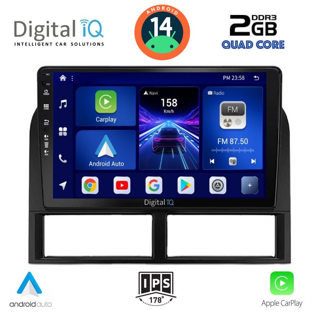 [vc_row equal_height="yes" margin_bottom="40px"][vc_column width="1/5"][vc_single_image source="external_link" external_img_size="170x170" alignment="center" css_animation="slideInDown" custom_src="https://digitaliq.gr/wp-content/uploads/2018/10/icon_cpu_170x170.png"][vc_custom_heading text="MTK 8227L Quad Core 1.3Ghz | 2GB DDR3 RAM | 32GB NAND FLASH STORAGE" font_container="tag:h6|text_align:center" spacing_heading="" spacing_heading_tab="" spacing_heading_mobile="" custom_heading_font_weight="600"][/vc_column][vc_column width="1/5"][vc_single_image source="external_link" external_img_size="170x170" alignment="center" css_animation="slideInDown" custom_src="https://digitaliq.gr/wp-content/uploads/2021/11/icon_android-170x170.png"][vc_custom_heading text="ANDROID 14 FAST LOADING 8sec" font_container="tag:h6|text_align:center" custom_heading_font_weight="600"][/vc_column][vc_column width="1/5"][vc_single_image source="external_link" external_img_size="170x170" alignment="center" css_animation="slideInDown" css="" custom_src="https://digitaliq.gr/wp-content/uploads/2024/10/icon_carplay_android-auto_certified_170.png"][vc_custom_heading text="LICENSED WIRELESS APPLE CARPLAY & ANDROID AUTO" font_container="tag:h6|text_align:center" custom_heading_font_weight="600"][/vc_column][vc_column width="1/5"][vc_single_image source="external_link" external_img_size="170x170" alignment="center" css_animation="slideInDown" custom_src="https://digitaliq.gr/wp-content/uploads/2018/10/eq_icon.png"][vc_custom_heading text="64 BAND EQUALIZER" font_container="tag:h6|text_align:center" custom_heading_font_weight="600"][/vc_column][vc_column width="1/5"][vc_single_image source="external_link" external_img_size="170x170" alignment="center" css_animation="slideInDown" custom_src="https://digitaliq.gr/wp-content/uploads/2018/10/rear_cam_icon.png"][vc_custom_heading text="FRONT & REAR CAMERA SUPPORT" font_container="tag:h6|text_align:center" custom_heading_font_weight="600"][/vc_column][/vc_row][vc_row][vc_column][vc_separator][/vc_column][/vc_row][vc_row][vc_column width="1/2" margin_right="40px" padding_right="40px"][vc_row_inner][vc_column_inner width="1/4" padding_top="20px"][vc_single_image source="external_link" external_img_size="100x61" alignment="center" css_animation="zoomIn" custom_src="https://digitaliq.gr/wp-content/uploads/2018/10/9inch-capacitive-touchscreen.jpg"][/vc_column_inner][vc_column_inner width="3/4"][vc_custom_heading text="9 inches" font_container="tag:h5|text_align:left" custom_heading_font_weight="600"][vc_custom_heading text="Capacitive Touchscreen" font_container="tag:h6|text_align:left" custom_heading_font_weight="500"][vc_column_text]Eυκρινής οθόνη αφής, υψηλής ανάλυσης 1024x600pixels.[/vc_column_text][/vc_column_inner][/vc_row_inner][/vc_column][vc_column width="1/2"][vc_row_inner][vc_column_inner width="1/4" padding_top="20px"][vc_single_image source="external_link" external_img_size="100x61" alignment="center" css_animation="zoomIn" custom_src="https://digitaliq.gr/wp-content/uploads/2021/11/13-band_graphical_eq.jpg"][/vc_column_inner][vc_column_inner width="3/4"][vc_custom_heading text="4x50 WATT" font_container="tag:h5|text_align:left" custom_heading_font_weight="600"][vc_custom_heading text="EQUALIZER with 64 BANDS" font_container="tag:h6|text_align:left" custom_heading_font_weight="500"][vc_column_text]Δυνατός και πλούσιος ήχος με δυνατότητα ρυθμίσεων μέσω του equalizer 16 περιοχών![/vc_column_text][/vc_column_inner][/vc_row_inner][/vc_column][/vc_row][vc_row][vc_column width="1/2"][vc_row_inner][vc_column_inner width="1/4" padding_top="20px"][vc_single_image source="external_link" external_img_size="100x100" alignment="center" css_animation="zoomIn" css="" custom_src="https://digitaliq.gr/wp-content/uploads/2024/10/Apple_CarPlay_Logo_certified_115.jpg"][/vc_column_inner][vc_column_inner width="3/4"][vc_custom_heading text="WIRELESS APPLE CARPLAY" font_container="tag:h5|text_align:left" custom_heading_font_weight="600"][vc_custom_heading text="Licensed & Certified Apple CarPlay" font_container="tag:h6|text_align:left" custom_heading_font_weight="500"][vc_column_text]Το Apple CarPlay & το Android Auto προσφέρει στους χρήστες iPhone® & Android συσκευών έναν απίστευτα διαισθητικό τρόπο να πραγματοποιούν κλήσεις, να χρησιμοποιούν τους Χάρτες, να ακούν μουσική και να έχουν πρόσβαση σε μηνύματα με μια λέξη ή ένα άγγιγμα. Το Apple CarPlay απαιτεί iPhone 5 ή νεότερο με την πιο πρόσφατη έκδοση του iOS. Το Ασύρματο Android Auto θα πρέπει να υποστηρίζεται από τη συσκευή σας.[/vc_column_text][/vc_column_inner][/vc_row_inner][/vc_column][vc_column width="1/2"][vc_row_inner][vc_column_inner width="1/4" padding_top="20px"][vc_single_image source="external_link" external_img_size="100x61" alignment="center" css_animation="zoomIn" css="" custom_src="https://digitaliq.gr/wp-content/uploads/2024/10/Android_auto-Logo_certified_115.jpg"][/vc_column_inner][vc_column_inner width="3/4"][vc_custom_heading text="WIRELESS ANDROID AUTO" font_container="tag:h5|text_align:left" custom_heading_font_weight="600"][vc_custom_heading text="*Εφόσον υποστηρίζεται από την συσκευή σας" font_container="tag:h6|text_align:left"][vc_custom_heading text="Licensed & Certified Android Auto" font_container="tag:h6|text_align:left" custom_heading_font_weight="500"][vc_column_text] Επεκτείνει την πλατφόρμα Android στο αυτοκίνητο με τρόπο που έχει σχεδιαστεί ειδικά για την οδήγηση και σας φέρνει αυτόματα χρήσιμες πληροφορίες και 