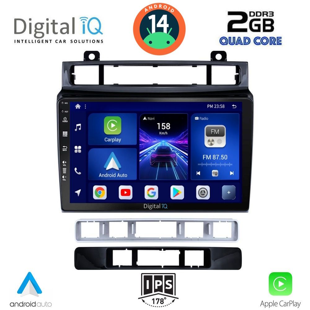 [vc_row equal_height="yes" margin_bottom="40px"][vc_column width="1/5"][vc_single_image source="external_link" external_img_size="170x170" alignment="center" css_animation="slideInDown" custom_src="https://digitaliq.gr/wp-content/uploads/2018/10/icon_cpu_170x170.png"][vc_custom_heading text="MTK 8227L Quad Core 1.3Ghz | 2GB DDR3 RAM | 32GB NAND FLASH STORAGE" font_container="tag:h6|text_align:center" spacing_heading="" spacing_heading_tab="" spacing_heading_mobile="" custom_heading_font_weight="600"][/vc_column][vc_column width="1/5"][vc_single_image source="external_link" external_img_size="170x170" alignment="center" css_animation="slideInDown" custom_src="https://digitaliq.gr/wp-content/uploads/2021/11/icon_android-170x170.png"][vc_custom_heading text="ANDROID 14 FAST LOADING 8sec" font_container="tag:h6|text_align:center" custom_heading_font_weight="600"][/vc_column][vc_column width="1/5"][vc_single_image source="external_link" external_img_size="170x170" alignment="center" css_animation="slideInDown" css="" custom_src="https://digitaliq.gr/wp-content/uploads/2024/10/icon_carplay_android-auto_certified_170.png"][vc_custom_heading text="LICENSED WIRELESS APPLE CARPLAY & ANDROID AUTO" font_container="tag:h6|text_align:center" custom_heading_font_weight="600"][/vc_column][vc_column width="1/5"][vc_single_image source="external_link" external_img_size="170x170" alignment="center" css_animation="slideInDown" custom_src="https://digitaliq.gr/wp-content/uploads/2018/10/eq_icon.png"][vc_custom_heading text="64 BAND EQUALIZER" font_container="tag:h6|text_align:center" custom_heading_font_weight="600"][/vc_column][vc_column width="1/5"][vc_single_image source="external_link" external_img_size="170x170" alignment="center" css_animation="slideInDown" custom_src="https://digitaliq.gr/wp-content/uploads/2018/10/rear_cam_icon.png"][vc_custom_heading text="FRONT & REAR CAMERA SUPPORT" font_container="tag:h6|text_align:center" custom_heading_font_weight="600"][/vc_column][/vc_row][vc_row][vc_column][vc_separator][/vc_column][/vc_row][vc_row][vc_column width="1/2" margin_right="40px" padding_right="40px"][vc_row_inner][vc_column_inner width="1/4" padding_top="20px"][vc_single_image source="external_link" external_img_size="100x61" alignment="center" css_animation="zoomIn" custom_src="https://digitaliq.gr/wp-content/uploads/2018/10/9inch-capacitive-touchscreen.jpg"][/vc_column_inner][vc_column_inner width="3/4"][vc_custom_heading text="9 inches" font_container="tag:h5|text_align:left" custom_heading_font_weight="600"][vc_custom_heading text="Capacitive Touchscreen" font_container="tag:h6|text_align:left" custom_heading_font_weight="500"][vc_column_text]Eυκρινής οθόνη αφής, υψηλής ανάλυσης 1024x600pixels.[/vc_column_text][/vc_column_inner][/vc_row_inner][/vc_column][vc_column width="1/2"][vc_row_inner][vc_column_inner width="1/4" padding_top="20px"][vc_single_image source="external_link" external_img_size="100x61" alignment="center" css_animation="zoomIn" custom_src="https://digitaliq.gr/wp-content/uploads/2021/11/13-band_graphical_eq.jpg"][/vc_column_inner][vc_column_inner width="3/4"][vc_custom_heading text="4x50 WATT" font_container="tag:h5|text_align:left" custom_heading_font_weight="600"][vc_custom_heading text="EQUALIZER with 64 BANDS" font_container="tag:h6|text_align:left" custom_heading_font_weight="500"][vc_column_text]Δυνατός και πλούσιος ήχος με δυνατότητα ρυθμίσεων μέσω του equalizer 16 περιοχών![/vc_column_text][/vc_column_inner][/vc_row_inner][/vc_column][/vc_row][vc_row][vc_column width="1/2"][vc_row_inner][vc_column_inner width="1/4" padding_top="20px"][vc_single_image source="external_link" external_img_size="100x100" alignment="center" css_animation="zoomIn" css="" custom_src="https://digitaliq.gr/wp-content/uploads/2024/10/Apple_CarPlay_Logo_certified_115.jpg"][/vc_column_inner][vc_column_inner width="3/4"][vc_custom_heading text="WIRELESS APPLE CARPLAY" font_container="tag:h5|text_align:left" custom_heading_font_weight="600"][vc_custom_heading text="Licensed & Certified Apple CarPlay" font_container="tag:h6|text_align:left" custom_heading_font_weight="500"][vc_column_text]Το Apple CarPlay & το Android Auto προσφέρει στους χρήστες iPhone® & Android συσκευών έναν απίστευτα διαισθητικό τρόπο να πραγματοποιούν κλήσεις, να χρησιμοποιούν τους Χάρτες, να ακούν μουσική και να έχουν πρόσβαση σε μηνύματα με μια λέξη ή ένα άγγιγμα. Το Apple CarPlay απαιτεί iPhone 5 ή νεότερο με την πιο πρόσφατη έκδοση του iOS. Το Ασύρματο Android Auto θα πρέπει να υποστηρίζεται από τη συσκευή σας.[/vc_column_text][/vc_column_inner][/vc_row_inner][/vc_column][vc_column width="1/2"][vc_row_inner][vc_column_inner width="1/4" padding_top="20px"][vc_single_image source="external_link" external_img_size="100x61" alignment="center" css_animation="zoomIn" css="" custom_src="https://digitaliq.gr/wp-content/uploads/2024/10/Android_auto-Logo_certified_115.jpg"][/vc_column_inner][vc_column_inner width="3/4"][vc_custom_heading text="WIRELESS ANDROID AUTO" font_container="tag:h5|text_align:left" custom_heading_font_weight="600"][vc_custom_heading text="*Εφόσον υποστηρίζεται από την συσκευή σας" font_container="tag:h6|text_align:left"][vc_custom_heading text="Licensed & Certified Android Auto" font_container="tag:h6|text_align:left" custom_heading_font_weight="500"][vc_column_text] Επεκτείνει την πλατφόρμα Android στο αυτοκίνητο με τρόπο που έχει σχεδιαστεί ειδικά για την οδήγηση και σας φέρνει αυτόματα χρήσιμες πληροφορίες και 