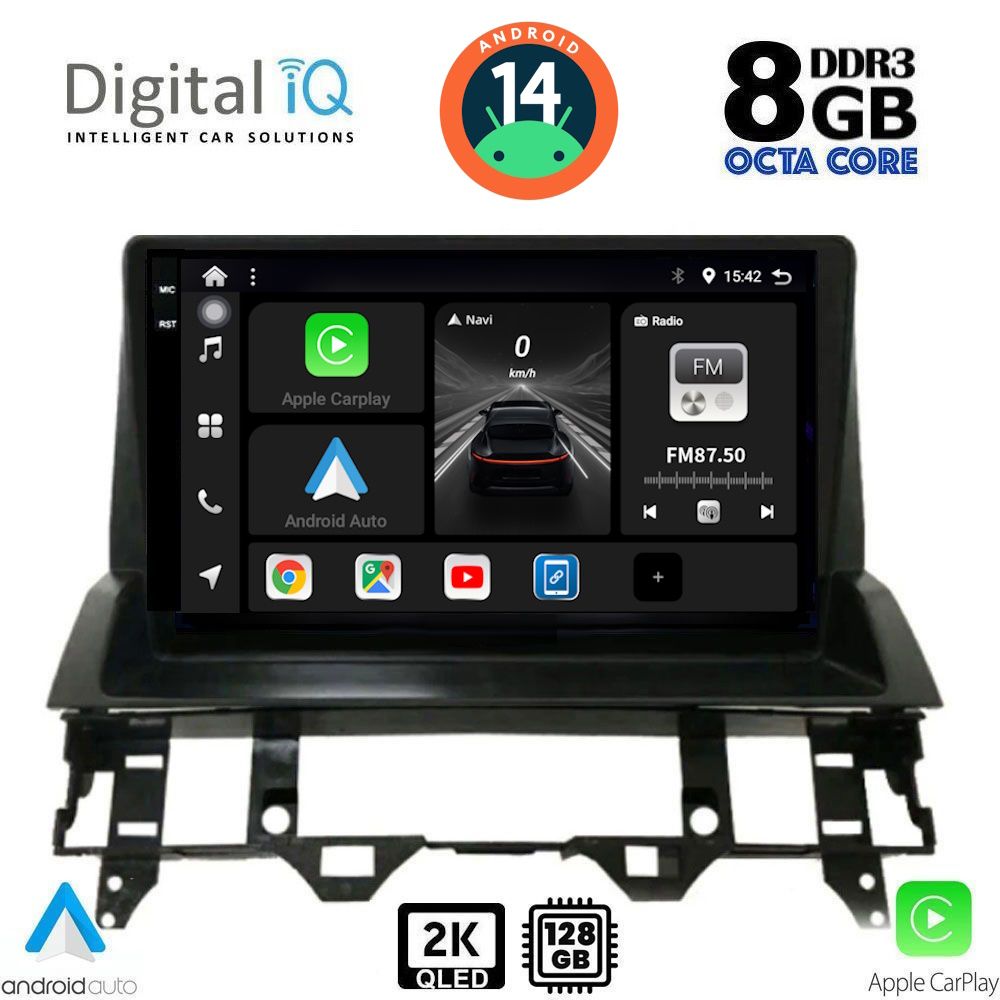 MULTIMEDIA TABLET OEM MAZDA 6 mod. 2002-2008 ANDROID 14 | Ultra Fast Loading 2sec CPU : B200 CORTEX A53 | 64BIT | OCTA CORE | 2.5Ghz RAM : 8GB DDR4 | INTERNAL STORAGE : 128GB NAND FLASH SUPPORTS STEERING WHEEL COMMANDS with CANBUS