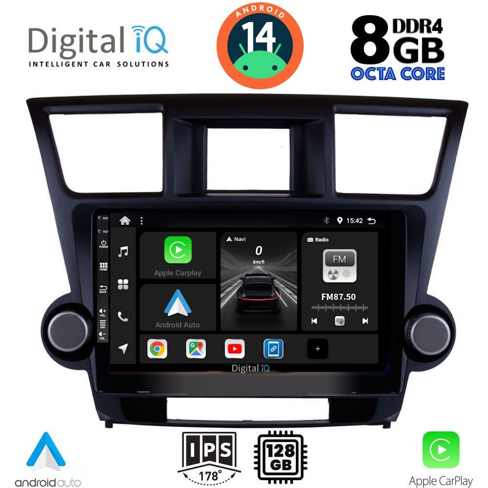 MULTIMEDIA TABLET for TOYOTA HIGHLANDER mod. 2008-2015 ANDROID 14 | Ultra Fast Loading 2sec CPU : B200 CORTEX A53 | 64bit | 8CORE | 2.5Ghz RAM : 8GB DDR4 | INTERNAL STORAGE : 128GB NAND FLASH SUPPORTS STEERING WHEEL COMMANDS