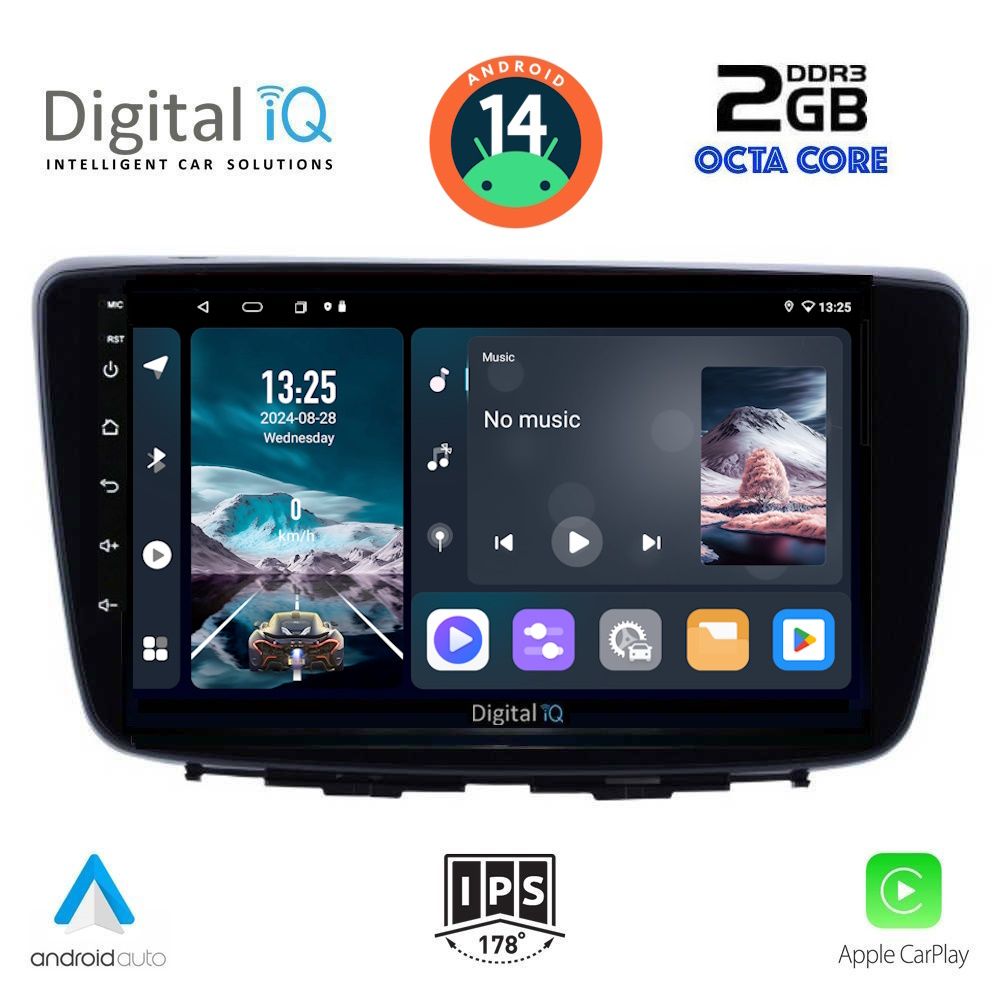 [vc_row equal_height="yes" margin_bottom="40px"][vc_column width="1/5" border_color="#878787" border_radius="5"][vc_single_image source="external_link" external_img_size="170x170" alignment="center" css_animation="slideInDown" custom_src="https://digitaliq.gr/wp-content/uploads/2018/10/icon_cpu-170x170.png"][vc_custom_heading text="CORTEX A55 8core 1.6Ghz 2GB RAM - 32Gb FLASH" font_container="tag:h6|text_align:center" custom_heading_font_weight="600"][/vc_column][vc_column width="1/5"][vc_single_image source="external_link" external_img_size="170x170" alignment="center" css_animation="slideInDown" custom_src="https://digitaliq.gr/wp-content/uploads/2021/11/icon_android-170x170.png"][vc_custom_heading text="ANDROID 14 ULTRA FAST LOADING 3sec" font_container="tag:h6|text_align:center" custom_heading_font_weight="600"][/vc_column][vc_column width="1/5"][vc_single_image source="external_link" external_img_size="170x170" alignment="center" css_animation="slideInDown" custom_src="https://digitaliq.gr/wp-content/uploads/2018/10/eq_icon.png"][vc_custom_heading text="32BAND EQUALIZER with TIME DELAY" font_container="tag:h6|text_align:center" custom_heading_font_weight="600"][/vc_column][vc_column width="1/5"][vc_single_image source="external_link" external_img_size="170x170" alignment="center" css_animation="slideInDown" custom_src="https://digitaliq.gr/wp-content/uploads/2021/11/icon_carplay_android-auto-170x170.png"][vc_custom_heading text="WIRELESS APPLE CARPLAY & ANDROID AUTO" font_container="tag:h6|text_align:center" spacing_heading="" spacing_heading_tab="" spacing_heading_mobile="" custom_heading_font_weight="600"][/vc_column][vc_column width="1/5"][vc_single_image source="external_link" external_img_size="170x170" alignment="center" css_animation="slideInDown" custom_src="https://digitaliq.gr/wp-content/uploads/2018/10/rear_cam_icon.png"][vc_custom_heading text="FRONT & REAR CAMERA SUPPORT" font_container="tag:h6|text_align:center" custom_heading_font_weight="600"][/vc_column][/vc_row][vc_row][vc_column][vc_separator][/vc_column][/vc_row][vc_row][vc_column width="1/2" margin_right="40px" padding_right="40px"][vc_row_inner][vc_column_inner width="1/4" padding_top="20px"][vc_single_image source="external_link" external_img_size="100x61" alignment="center" css_animation="zoomIn" custom_src="https://digitaliq.gr/wp-content/uploads/2021/11/9inch-capacitive-touchscreen.jpg"][/vc_column_inner][vc_column_inner width="3/4"][vc_custom_heading text="TABLET 9 inches" font_container="tag:h5|text_align:left" custom_heading_font_weight="600"][vc_custom_heading text="IPS HD Touchscreen" font_container="tag:h6|text_align:left" custom_heading_font_weight="500"][vc_column_text]Μεγάλη ευκρινής HD οθόνη αφής, υψηλής ανάλυσης 1280x720pixels[/vc_column_text][/vc_column_inner][/vc_row_inner][/vc_column][vc_column width="1/2"][vc_row_inner][vc_column_inner width="1/4" padding_top="20px"][vc_single_image source="external_link" external_img_size="100x61" alignment="center" css_animation="zoomIn" custom_src="https://digitaliq.gr/wp-content/uploads/2021/11/13-band_graphical_eq.jpg"][/vc_column_inner][vc_column_inner width="3/4"][vc_custom_heading text="4x50 WATT" font_container="tag:h5|text_align:left" custom_heading_font_weight="600"][vc_custom_heading text="32 BAND EQUALIZER with TIME DELAY" font_container="tag:h6|text_align:left" custom_heading_font_weight="500"][vc_column_text]Πλούσιος ήχος με δυνατότητα πολλαπλών ρυθμίσεων μέσω του equalizer 32 περιοχών![/vc_column_text][/vc_column_inner][/vc_row_inner][/vc_column][/vc_row][vc_row][vc_column width="1/2" margin_right="40px" padding_right="40px"][vc_row_inner][vc_column_inner width="1/4" padding_top="20px"][vc_single_image source="external_link" external_img_size="100x100" alignment="center" css_animation="zoomIn" custom_src="https://digitaliq.gr/wp-content/uploads/2021/11/CarPlay-icon.jpg"][/vc_column_inner][vc_column_inner width="3/4"][vc_custom_heading text="WIRELESS APPLE CARPLAY" font_container="tag:h5|text_align:left" custom_heading_font_weight="600"][vc_column_text]Το Apple CarPlay προσφέρει στους χρήστες iPhone® έναν απίστευτα διαισθητικό τρόπο να πραγματοποιούν κλήσεις, να χρησιμοποιούν τους Χάρτες, να ακούν μουσική και να έχουν πρόσβαση σε μηνύματα με μια λέξη ή ένα άγγιγμα. Το Apple CarPlay απαιτεί iPhone 5 ή νεότερο με την πιο πρόσφατη έκδοση του iOS.[/vc_column_text][/vc_column_inner][/vc_row_inner][/vc_column][vc_column width="1/2"][vc_row_inner][vc_column_inner width="1/4" padding_top="20px"][vc_single_image source="external_link" external_img_size="100x100" alignment="center" css_animation="zoomIn" custom_src="https://digitaliq.gr/wp-content/uploads/2021/11/android_auto_icon.jpg"][/vc_column_inner][vc_column_inner width="3/4"][vc_custom_heading text="WIRELESS ANDROID AUTO" font_container="tag:h5|text_align:left" spacing_heading="" spacing_heading_tab="" spacing_heading_mobile="" custom_heading_font_weight="600"][vc_custom_heading text="*Εφόσον υποστηρίζεται από την συσκευή σας" font_container="tag:h6|text_align:left" spacing_heading="" spacing_heading_tab="" spacing_heading_mobile="" custom_heading_font_weight="400"][vc_column_text]Επεκτείνει την πλατφόρμα Android στο αυτοκίνητο με τρόπο που έχει σχεδιαστεί ειδικά για την οδήγηση και σας φέρνει αυτόματα χρήσιμες πληροφορίες και τις οργανώνει σε απλές κάρτες που εμφανίζονται ακριβώς όταν τις χρειάζονται. Έχει σχεδιαστεί για να ελαχιστοποιεί την απόσπ