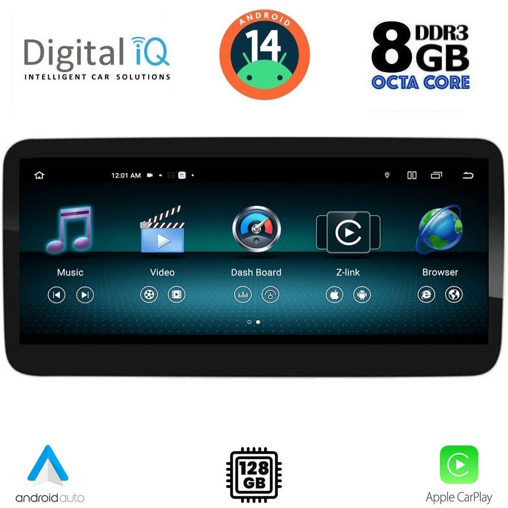 2x CORTEX-A75 & 6x CORTEX-A55" font_container="tag:h6|text_align:center" custom_heading_font_weight="600"][/vc_column][vc_column width="1/5"][vc_single_image source="external_link" external_img_size="170x170" alignment="center" css_animation="slideInDown" custom_src="https://digitaliq.gr/wp-content/uploads/2018/10/icon_memory_170x170.png"][vc_custom_heading text="RAM: 8GB LPDDR4x | NAND FLASH: 128GB" font_container="tag:h6|text_align:center" custom_heading_font_weight="600"][/vc_column][vc_column width="1/5"][vc_single_image source="external_link" external_img_size="170x170" alignment="center" css_animation="slideInDown" custom_src="https://digitaliq.gr/wp-content/uploads/2021/11/icon_android-170x170.png"][vc_custom_heading text="ANDROID 14" font_container="tag:h6|text_align:center" spacing_heading="" spacing_heading_tab="" spacing_heading_mobile="" custom_heading_font_weight="600"][/vc_column][vc_column width="1/5"][vc_single_image source="external_link" external_img_size="170x170" alignment="center" css_animation="slideInDown" custom_src="https://digitaliq.gr/wp-content/uploads/2022/01/icon_carplay_android-auto_170.png"][vc_custom_heading text="WIRELESS CAR PLAY & WIRELESS ANDROID AUTO" font_container="tag:h6|text_align:center" spacing_heading="" spacing_heading_tab="" spacing_heading_mobile="" custom_heading_font_weight="600"][/vc_column][vc_column width="1/5"][vc_single_image source="external_link" external_img_size="170x170" alignment="center" css_animation="slideInDown" custom_src="https://digitaliq.gr/wp-content/uploads/2018/10/rear_cam_icon.png"][vc_custom_heading text="SUPPORTS REAR CAMERA with REVERSE TRAJECTORY & PARKING SENSOR" font_container="tag:h6|text_align:center" custom_heading_font_weight="600"][/vc_column][/vc_row][vc_row][vc_column][vc_separator][/vc_column][/vc_row][vc_row][vc_column width="1/2" margin_right="40px" padding_right="40px"][vc_row_inner][vc_column_inner width="1/4" padding_top="20px"][vc_single_image source="external_link" external_img_size="100x61" alignment="center" css_animation="zoomIn" custom_src="https://digitaliq.gr/wp-content/uploads/2022/03/12_3inch-capacitive-touchscreen.jpg"][/vc_column_inner][vc_column_inner width="3/4"][vc_custom_heading text="TABLET 12.3 inches" font_container="tag:h5|text_align:left" custom_heading_font_weight="600"][vc_custom_heading text="Full HD Capacitive Touchscreen" font_container="tag:h6|text_align:left" custom_heading_font_weight="500"][vc_column_text]Eυκρινής οθόνη αφής, υψηλής ανάλυσης 1920x720pixels.[/vc_column_text][/vc_column_inner][/vc_row_inner][/vc_column][vc_column width="1/2"][vc_row_inner][vc_column_inner width="1/4" padding_top="20px"][vc_single_image source="external_link" external_img_size="100x100" alignment="center" css_animation="zoomIn" custom_src="https://digitaliq.gr/wp-content/uploads/2022/03/clima_100x100.jpg"][/vc_column_inner][vc_column_inner width="3/4"][vc_custom_heading text="CAR CLIMATE CONTROL" font_container="tag:h5|text_align:left" custom_heading_font_weight="600"][vc_column_text]Υποστηρίζει την προβολή του συστήματος κλιματισμού του αυτοκινήτου σας! (Aναλόγως την έκδοση)[/vc_column_text][/vc_column_inner][/vc_row_inner][/vc_column][/vc_row][vc_row][vc_column width="1/2"][vc_row_inner][vc_column_inner width="1/4" padding_top="20px"][vc_single_image source="external_link" external_img_size="100x100" alignment="center" css_animation="zoomIn" custom_src="https://digitaliq.gr/wp-content/uploads/2021/11/CarPlay-icon.jpg"][/vc_column_inner][vc_column_inner width="3/4"][vc_custom_heading text="WIRELESS APPLE CARPLAY" font_container="tag:h5|text_align:left" custom_heading_font_weight="600"][vc_column_text]