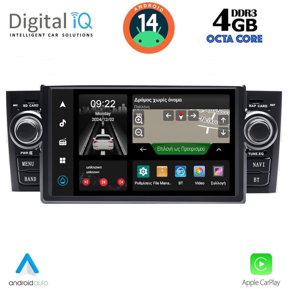 [vc_row equal_height="yes" margin_bottom="40px"][vc_column width="1/5" border_color="#878787" border_radius="5"][vc_single_image source="external_link" external_img_size="170x170" alignment="center" css_animation="slideInDown" custom_src="https://digitaliq.gr/wp-content/uploads/2018/10/icon_cpu-170x170.png"][vc_custom_heading text="A007 2xARM CORTEX A75 6xARM CORTEX A55 8core 1.8Ghz 4GB RAM - 64Gb FLASH" font_container="tag:h6|text_align:center" spacing_heading="" spacing_heading_tab="" spacing_heading_mobile="" custom_heading_font_weight="600"][/vc_column][vc_column width="1/5"][vc_single_image source="external_link" external_img_size="170x170" alignment="center" css_animation="slideInDown" css="" custom_src="https://digitaliq.gr/wp-content/uploads/2021/11/icon_android-170x170.png"][vc_custom_heading text="ANDROID 14 ULTRA FAST LOADING 3sec" font_container="tag:h6|text_align:center" custom_heading_font_weight="600"][/vc_column][vc_column width="1/5"][vc_single_image source="external_link" external_img_size="170x170" alignment="center" css_animation="slideInDown" custom_src="https://digitaliq.gr/wp-content/uploads/2018/10/eq_icon.png"][vc_custom_heading text="35BAND EQUALIZER with TIME DELAY" font_container="tag:h6|text_align:center" custom_heading_font_weight="600"][/vc_column][vc_column width="1/5"][vc_single_image source="external_link" external_img_size="170x170" alignment="center" css_animation="slideInDown" custom_src="https://digitaliq.gr/wp-content/uploads/2021/11/icon_carplay_android-auto-170x170.png"][vc_custom_heading text="WIRELESS APPLE CARPLAY & ANDROID AUTO" font_container="tag:h6|text_align:center" custom_heading_font_weight="600"][/vc_column][vc_column width="1/5"][vc_single_image source="external_link" external_img_size="170x170" alignment="center" css_animation="slideInDown" custom_src="https://digitaliq.gr/wp-content/uploads/2018/10/rear_cam_icon.png"][vc_custom_heading text="FRONT & REAR CAMERA SUPPORT" font_container="tag:h6|text_align:center" custom_heading_font_weight="600"][/vc_column][/vc_row][vc_row][vc_column][vc_separator][/vc_column][/vc_row][vc_row][vc_column width="1/2" margin_right="40px" padding_right="40px"][vc_row_inner][vc_column_inner width="1/4" padding_top="20px"][vc_single_image source="external_link" external_img_size="100x61" alignment="center" css_animation="zoomIn" custom_src="https://digitaliq.gr/wp-content/uploads/2018/10/7inch-capacitive-touchscreen.jpg"][/vc_column_inner][vc_column_inner width="3/4"][vc_custom_heading text="TABLET 7 inches" font_container="tag:h5|text_align:left" custom_heading_font_weight="600"][vc_custom_heading text="IPS HD Touchscreen" font_container="tag:h6|text_align:left" custom_heading_font_weight="500"][vc_column_text]Μεγάλη ευκρινής HD οθόνη αφής, υψηλής ανάλυσης 1024x600pixels[/vc_column_text][/vc_column_inner][/vc_row_inner][/vc_column][vc_column width="1/2"][vc_row_inner][vc_column_inner width="1/4" padding_top="20px"][vc_single_image source="external_link" external_img_size="100x61" alignment="center" css_animation="zoomIn" custom_src="https://digitaliq.gr/wp-content/uploads/2021/11/13-band_graphical_eq.jpg"][/vc_column_inner][vc_column_inner width="3/4"][vc_custom_heading text="4x50 WATT" font_container="tag:h5|text_align:left" custom_heading_font_weight="600"][vc_custom_heading text="35 BAND EQUALIZER with TIME DELAY" font_container="tag:h6|text_align:left" custom_heading_font_weight="500"][vc_column_text]Πλούσιος ήχος με δυνατότητα πολλαπλών ρυθμίσεων μέσω του equalizer 35 περιοχών![/vc_column_text][/vc_column_inner][/vc_row_inner][/vc_column][/vc_row][vc_row][vc_column width="1/2" margin_right="40px" padding_right="40px"][vc_row_inner][vc_column_inner width="1/4" padding_top="20px"][vc_single_image source="external_link" external_img_size="100x100" alignment="center" css_animation="zoomIn" custom_src="https://digitaliq.gr/wp-content/uploads/2021/11/CarPlay-icon.jpg"][/vc_column_inner][vc_column_inner width="3/4"][vc_custom_heading text="WIRELESS APPLE CARPLAY" font_container="tag:h5|text_align:left" custom_heading_font_weight="600"][vc_column_text]Το Apple CarPlay προσφέρει στους χρήστες iPhone® έναν απίστευτα διαισθητικό τρόπο να πραγματοποιούν κλήσεις, να χρησιμοποιούν τους Χάρτες, να ακούν μουσική και να έχουν πρόσβαση σε μηνύματα με μια λέξη ή ένα άγγιγμα. Το Apple CarPlay απαιτεί iPhone 5 ή νεότερο με την πιο πρόσφατη έκδοση του iOS.[/vc_column_text][/vc_column_inner][/vc_row_inner][/vc_column][vc_column width="1/2"][vc_row_inner][vc_column_inner width="1/4" padding_top="20px"][vc_single_image source="external_link" external_img_size="100x100" alignment="center" css_animation="zoomIn" custom_src="https://digitaliq.gr/wp-content/uploads/2021/11/android_auto_icon.jpg"][/vc_column_inner][vc_column_inner width="3/4"][vc_custom_heading text="WIRELESS ANDROID AUTO" font_container="tag:h5|text_align:left" custom_heading_font_weight="600"][vc_column_text]Επεκτείνει την πλατφόρμα Android στο αυτοκίνητο με τρόπο που έχει σχεδιαστεί ειδικά για την οδήγηση και σας φέρνει αυτόματα χρήσιμες πληροφορίες και τις οργανώνει σε απλές κάρτες που εμφανίζονται ακριβώς όταν τις χρειάζονται. Έχει σχεδιαστεί για να ελαχιστοποιεί την απόσπαση της προσοχής, ώστε να μπορείτε να παραμένετε συγκεντρωμένοι στο δρόμο μπροστά σας. Το Android Auto είναι συμβατό με τηλέφωνα Android με Android 5.0 (Lollipop) ή νεότερη