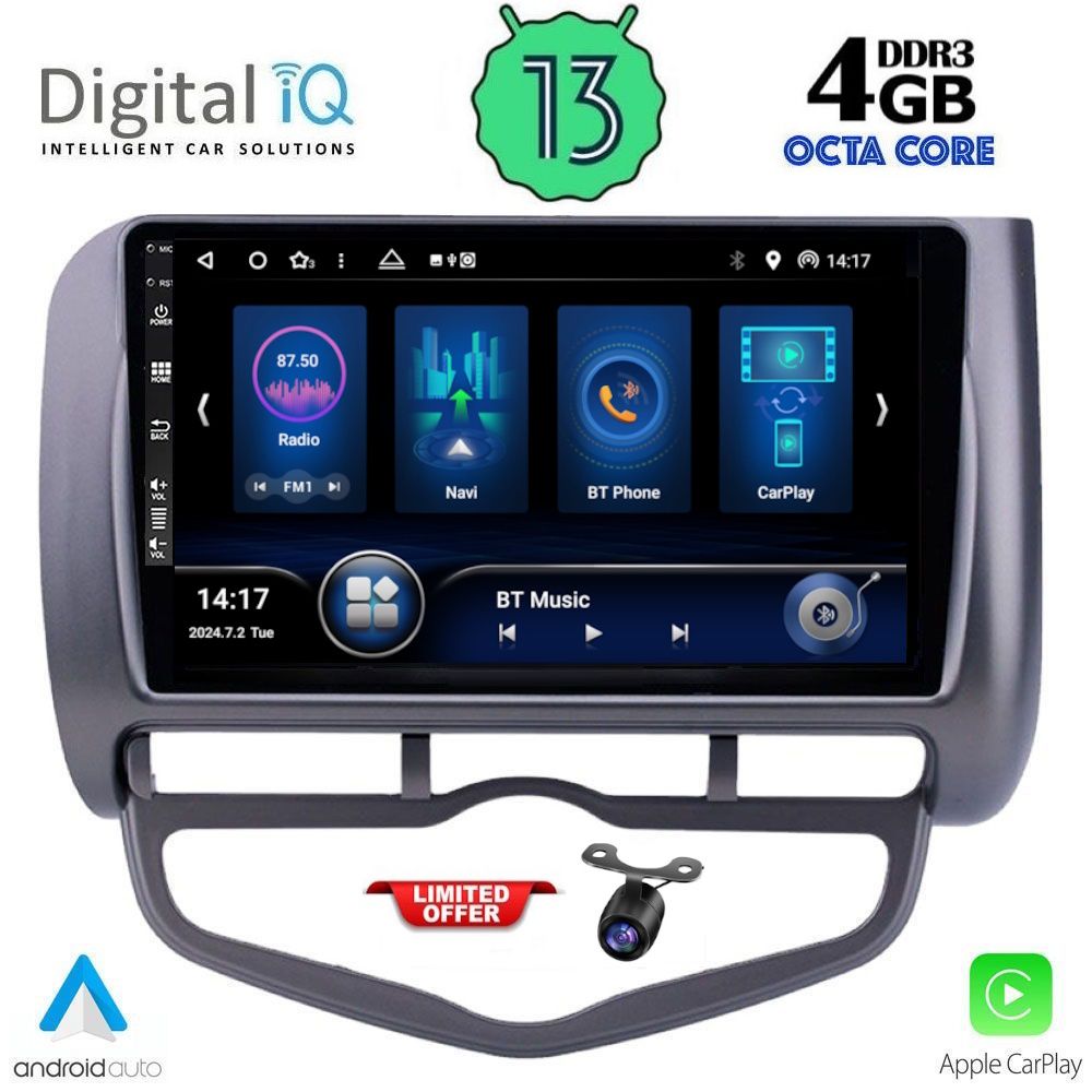 MULTIMEDIA TABLET for HONDA JAZZ (CLIMA) mod. 2002-2008 ANDROID 13 | Ultra Fast Loading 2sec CPU : B200 CORTEX A53 | 64bit | 8CORE | 2.5Ghz RAM : 4GB DDR4 | INTERNAL STORAGE : 64GB NAND FLASH SUPPORTS STEERING WHEEL COMMANDS