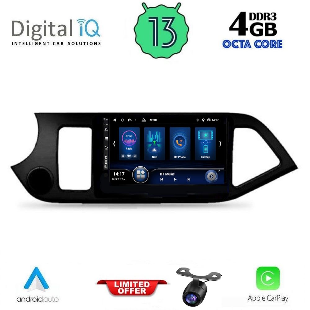 MULTIMEDIA TABLET for KIA PICANTO mod. 2011-2017 ANDROID 13 | Ultra Fast Loading 2sec CPU : B200 CORTEX A53 | 64bit | 8CORE | 2.5Ghz RAM : 4GB DDR4 | INTERNAL STORAGE : 64GB NAND FLASH SUPPORTS STEERING WHEEL COMMANDS