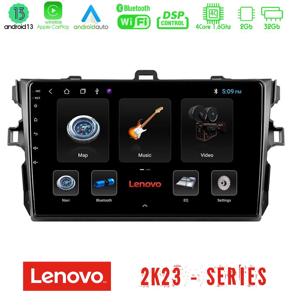 Lenovo Car Pad Toyota Corolla 2007-2012 4Core Android 13 2+32GB Navigation Multimedia Tablet 9"