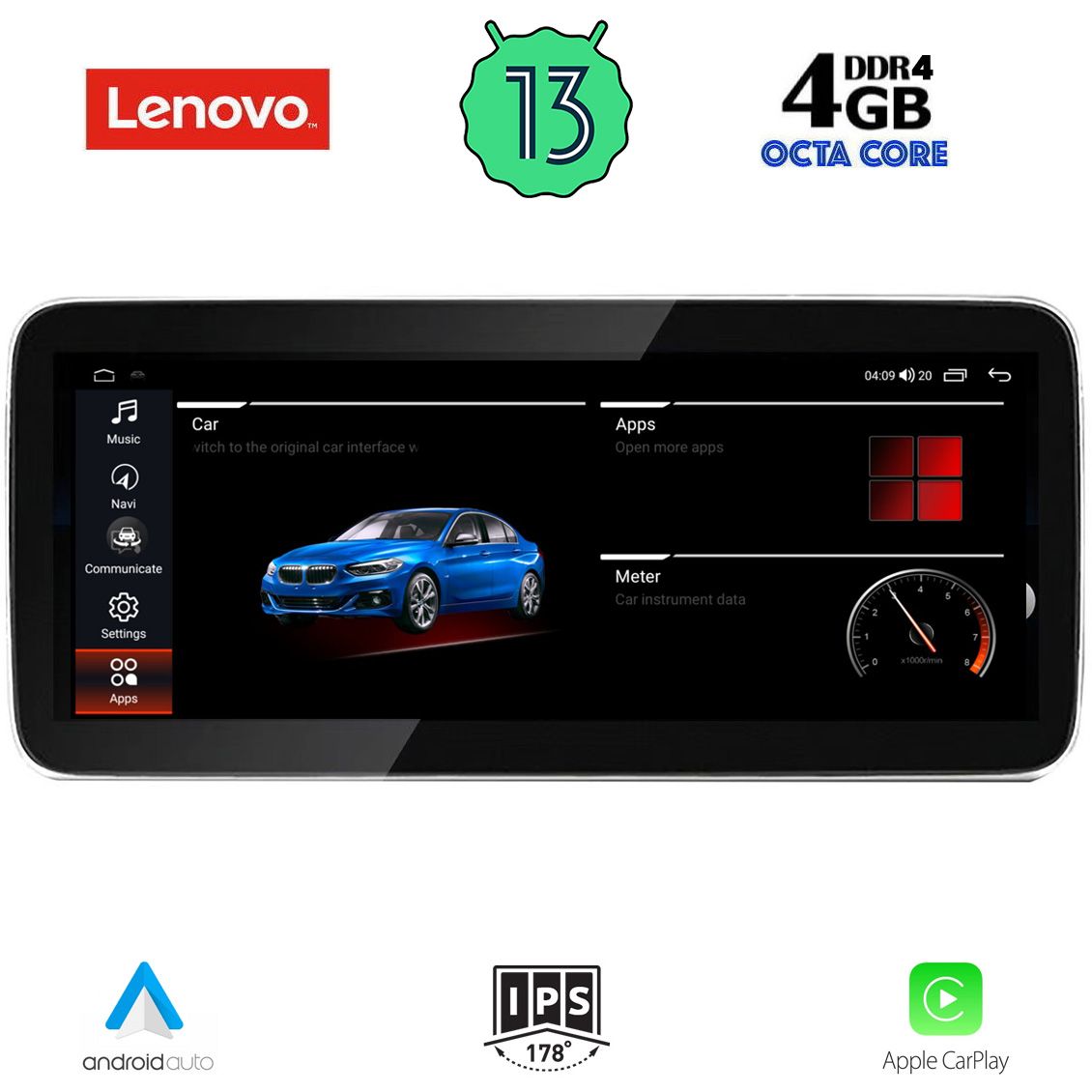 12.3 inches | IPS HD Touchscreen | Resolution: 1920x720 pixel | IPS Panel για υπερευρυγώνια θέαση χωρίς παραμορφώσεις 178° (ultra wide view 178°).
