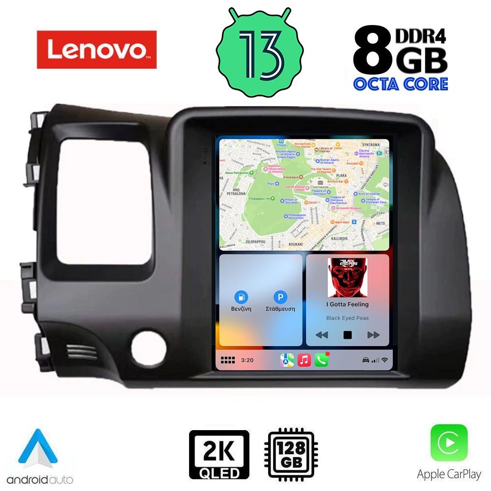 TESLA STYLE OEM HONDA CIVIC 4D mod. 2006-2012 ANDROID 13 | Ultra Fast Loading 2sec QUALCOMM SNAPDRAGON 665 CPU: KRYO 260 | 64Bit | 8CORE | 2Ghz GPU: ADRENO 610 RAM : 8GB DDR4 | INTERNAL STORAGE : 128GB NAND FLASH SUPPORTS STEERING WHEEL & CLIMA with CANBUS *’Ελεγχος συμβατότητας σε μοντέλλα με εργοστασιακό Navi