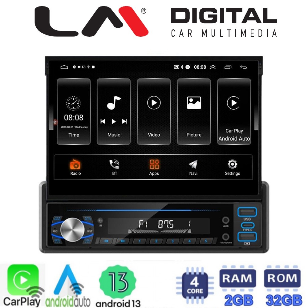 1din 7inc ANDORID 13 4core 2+32G CARPLAY - AndroidAuto -GPS - Bluetooth