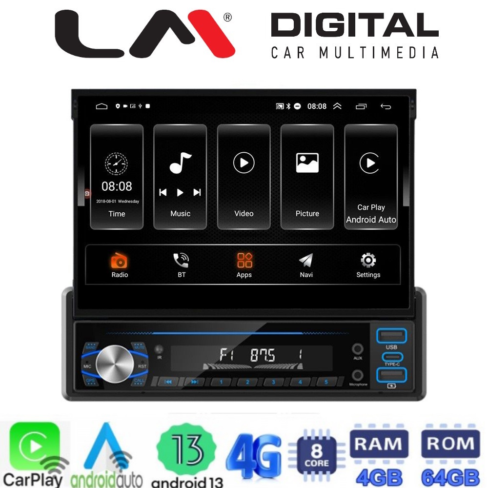 1din 7inc ANDORID 13 8core 4+64G CARPLAY - Android Auto GPS - Bluetooth