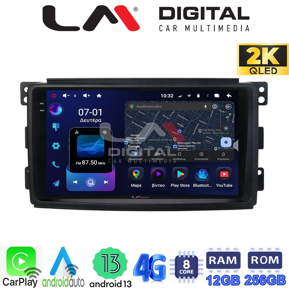 LM ZS8087 GPS Οθόνη OEM Multimedia Αυτοκινήτου για SMART 2007>2010 (CarPlay/AndroidAuto/BT/GPS/WIFI/GPRS)