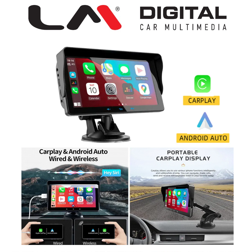 Μόνιτορ με CAR PALY & ANDROID AUTO σε βάση τζαμιού with DOUBLE bluetooth