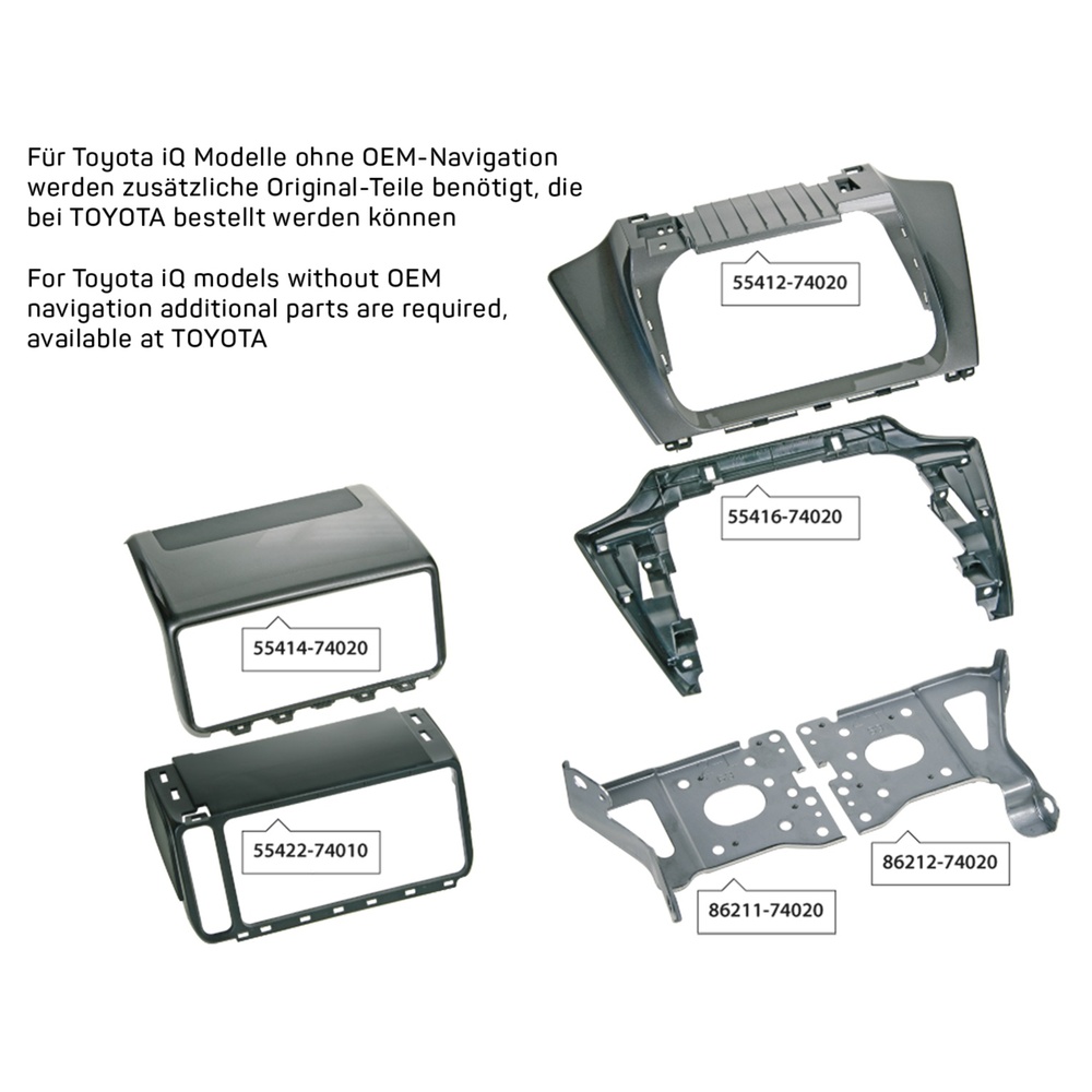 Για Toyota iQ χωρίς OEM navigation απαιτούνται έξτρα ανταλλακτικά από την TOYOTA.