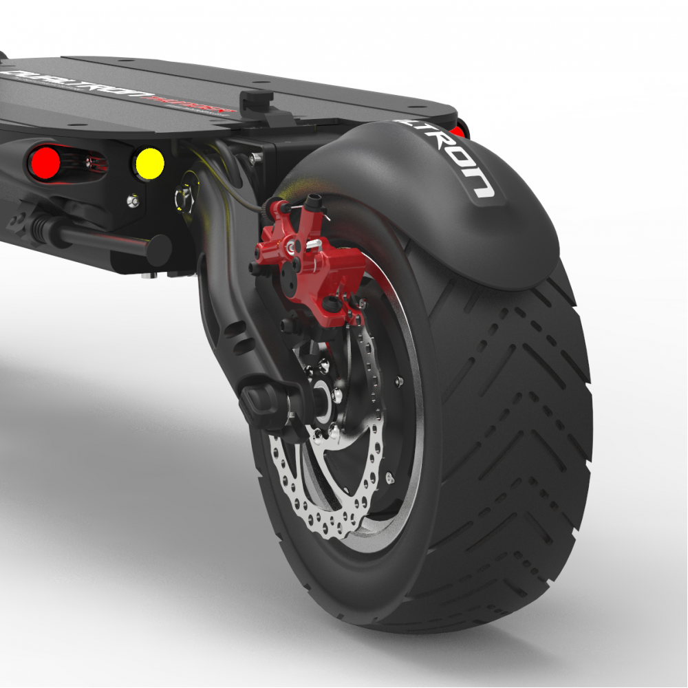 Το ηλεκτρικό Scooter Dualtron Thunder είναι εξοπλισμένο με ένα σύστημα διπλού φρένου, δηλαδή ένα υδραυλικό φρένο στον μπροστινό τροχό και ένα δισκόφρενο στον πίσω τροχό.