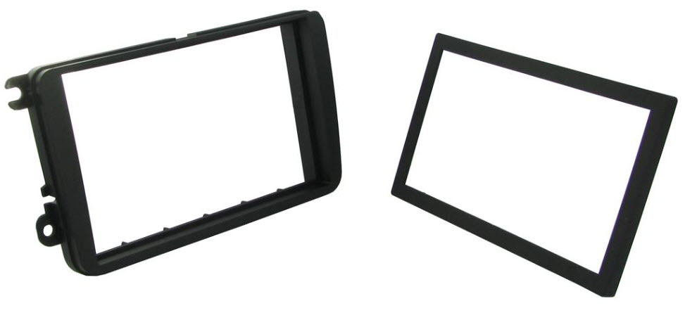 Complete fascia kit, supplied with either brackets or metal cage to mount the aftermarket double din head unit