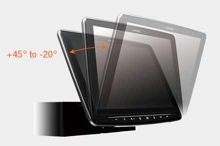 You can adjust the INE-F904DC’s display angle from +45 degrees to -20 degrees to match a wide range of dashboard angle. After the display angle is set, it gets locked into place during installation to be rock-steady while driving over any terrain and when pushing with your finger on the display to control the unit.