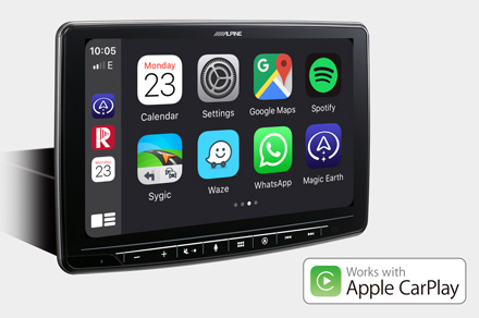 Simply connect your iPhone to the USB port of your Alpine Halo9 and launch Apple CarPlay to communicate, navigate and stay entertained with your favorite smartphone apps. Most apps are Siri optimized so you can keep your eyes on the road. Apple CarPlay is compatible with iPhone 5 and newer. Below we listed a small selection of recommended Apple CarPlay compatible apps.