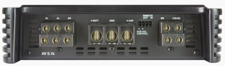 AV 5.1k, 1650 W (RMS) max, five-channels: with its hybrid design, it is the specialist amplifier for front + rear + subwoofer or multi-amplified front + subwoofer systems.