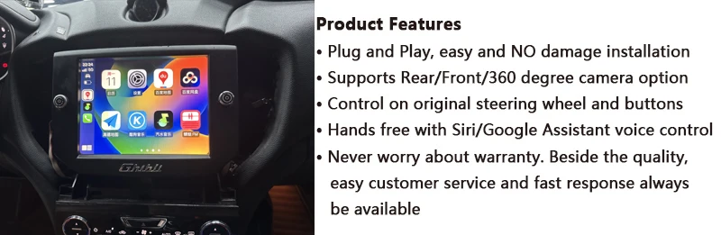 Wireless CarPlay AndroidAuto Smart Module for Maserati Quattroporte Ghibli 12-16 Support Mirroring OEM Microphone