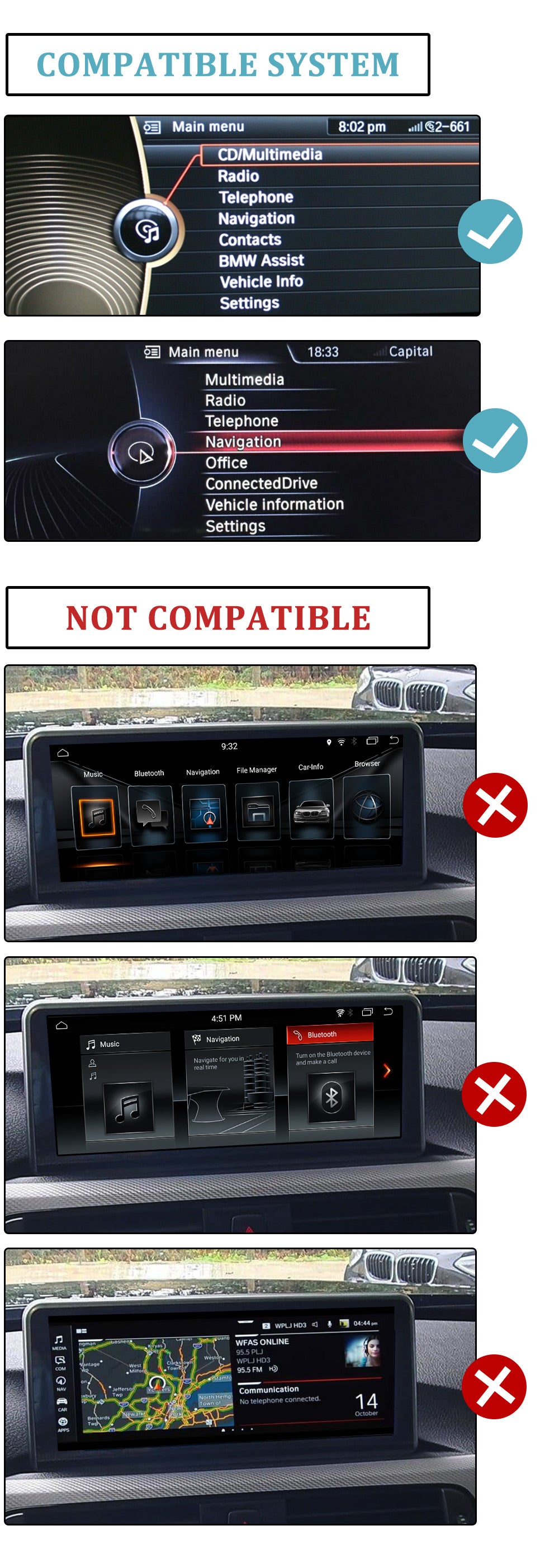 Our products are compatible with the CIC/NBT system. If your car is EVO system, it will not work.