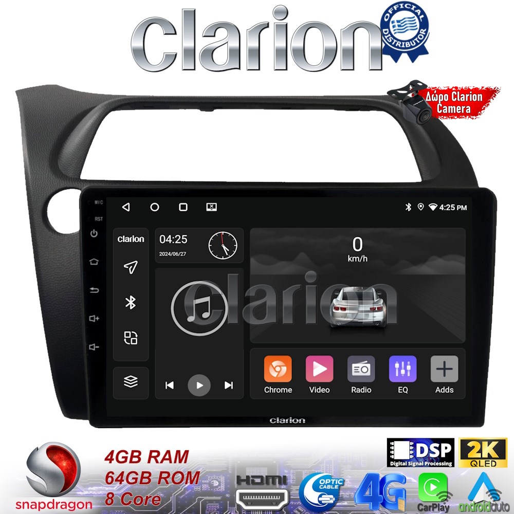 CLARION GL74744 Οθόνη OEM Multimedia Αυτοκινήτου για HONDA CIVIC 3/5D 2006-2012 (CarPlay/AndroidAuto/BT/GPS/WIFI/GPRS)