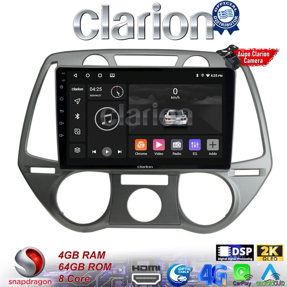 CLARION GL74838 Οθόνη OEM Multimedia Αυτοκινήτου για Hyundai i20 2008 > 2014 (CarPlay/AndroidAuto/BT/GPS/WIFI/GPRS)