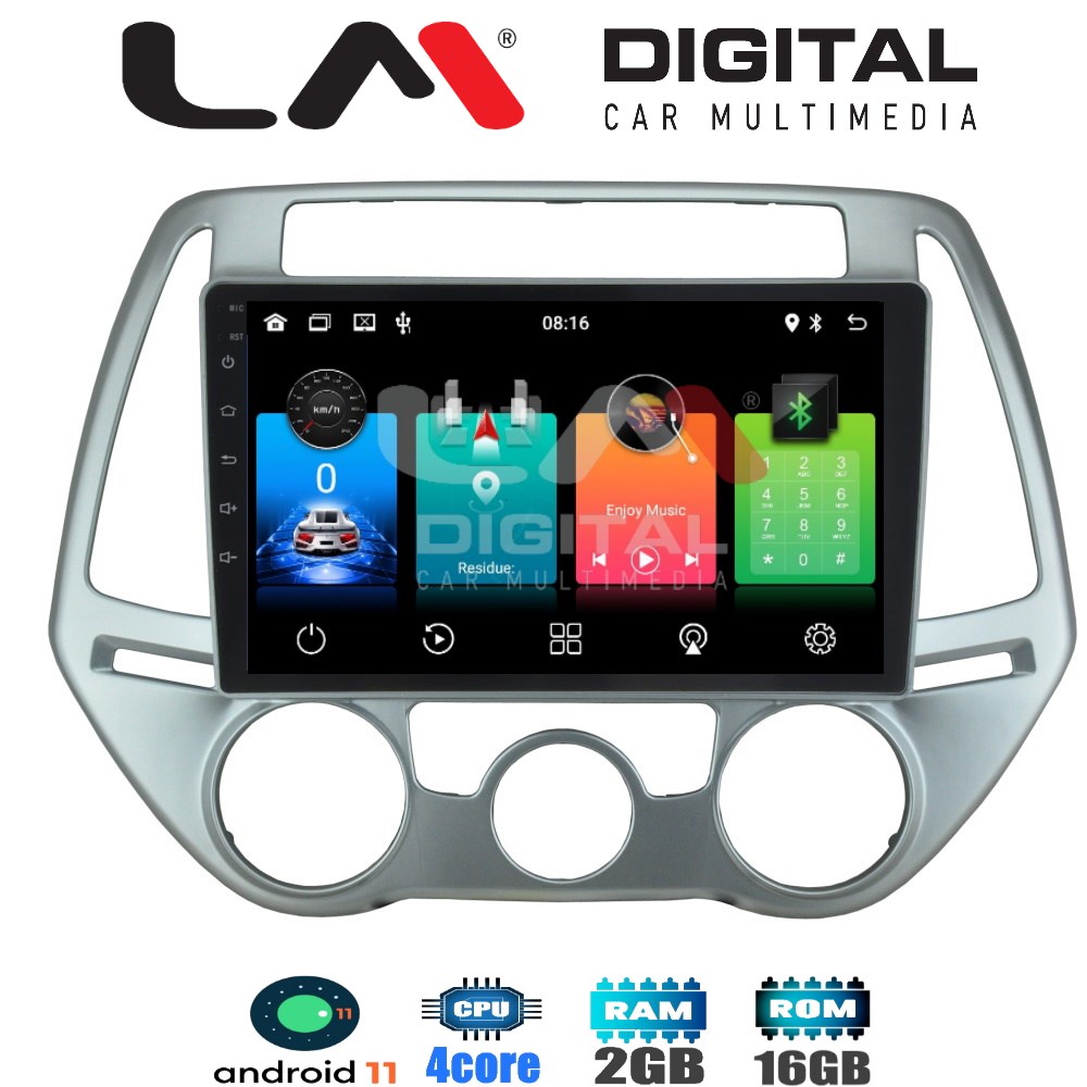 Android 11, Οθόνη OEM 9'', για Hyundai i20 από το 2008 έως το 2013, Capacitive HD Touchscreen, Resolution 1024 Χ 600 Pixels, 4 X 40 Watt, με 4πύρηνο επεξεργαστή και 2Gb Ram.
