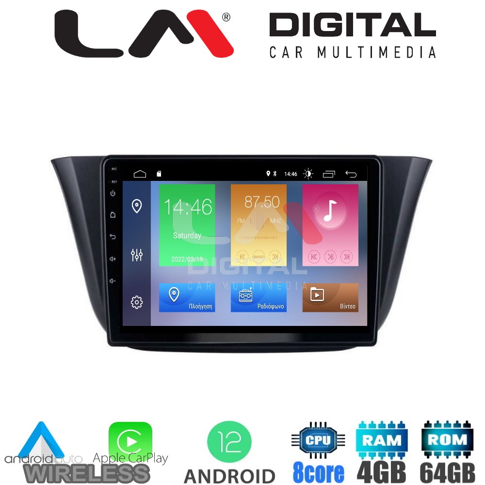 ΟΕΜ οθόνη 9'' με λογισμικό Android 12, 8 πύρηνο επεξεργαστή, 4Gb Ram μνήμη, με ενσωματωμένο σύστημα πλοήγησης και Apple Car Play/Android Auto.